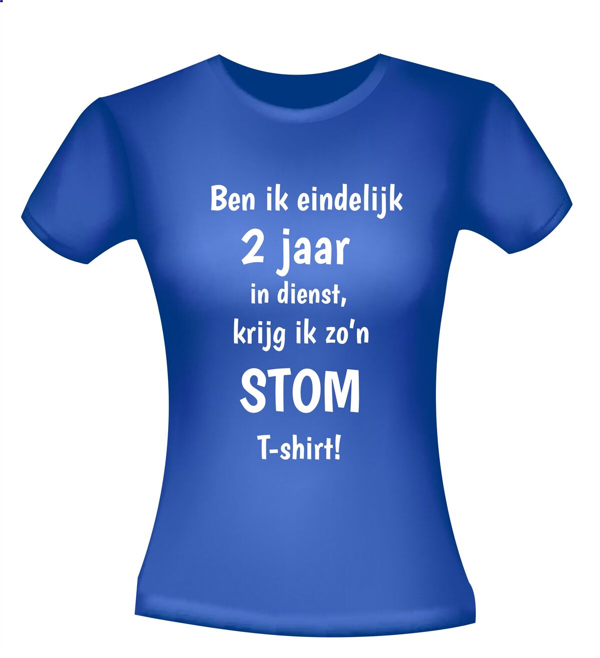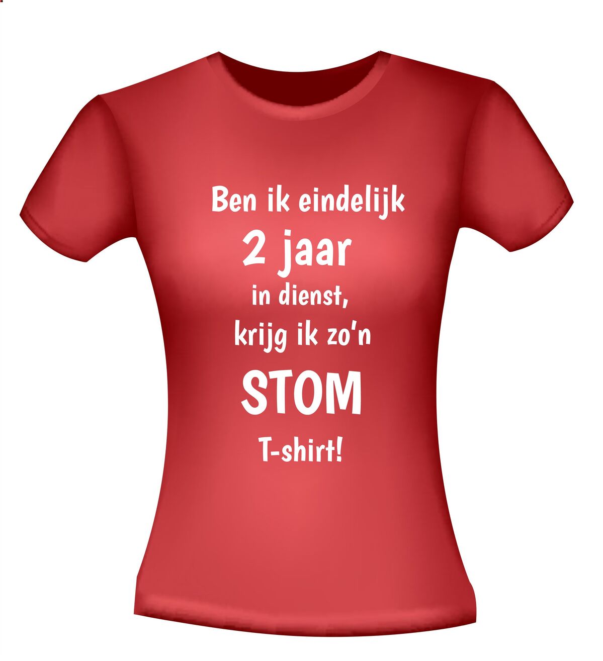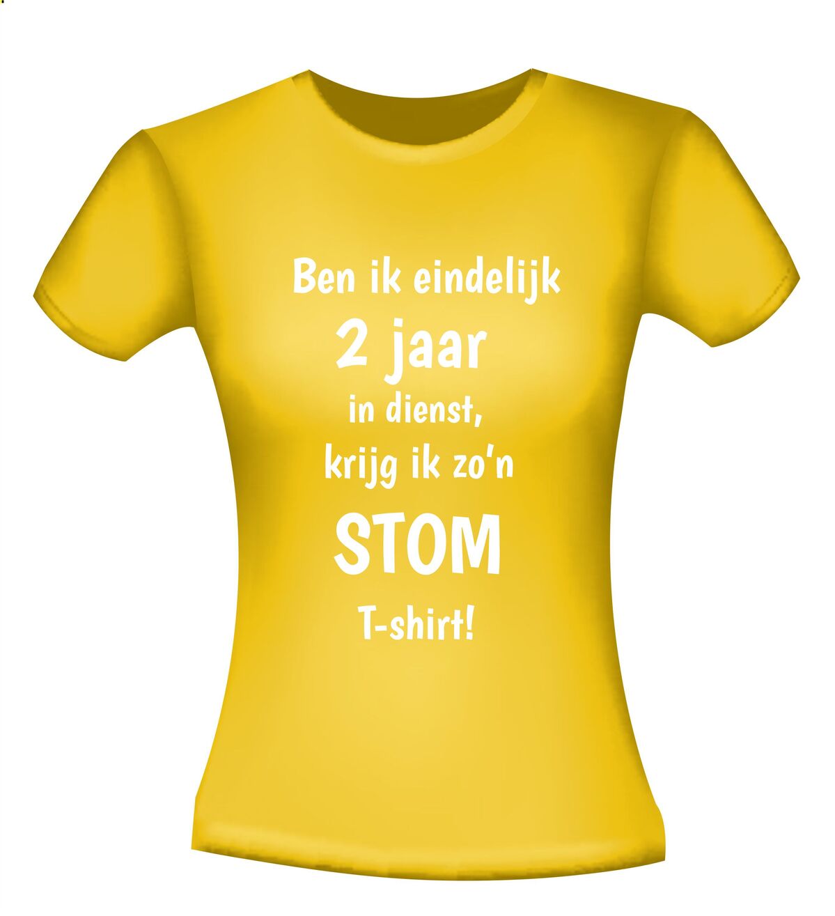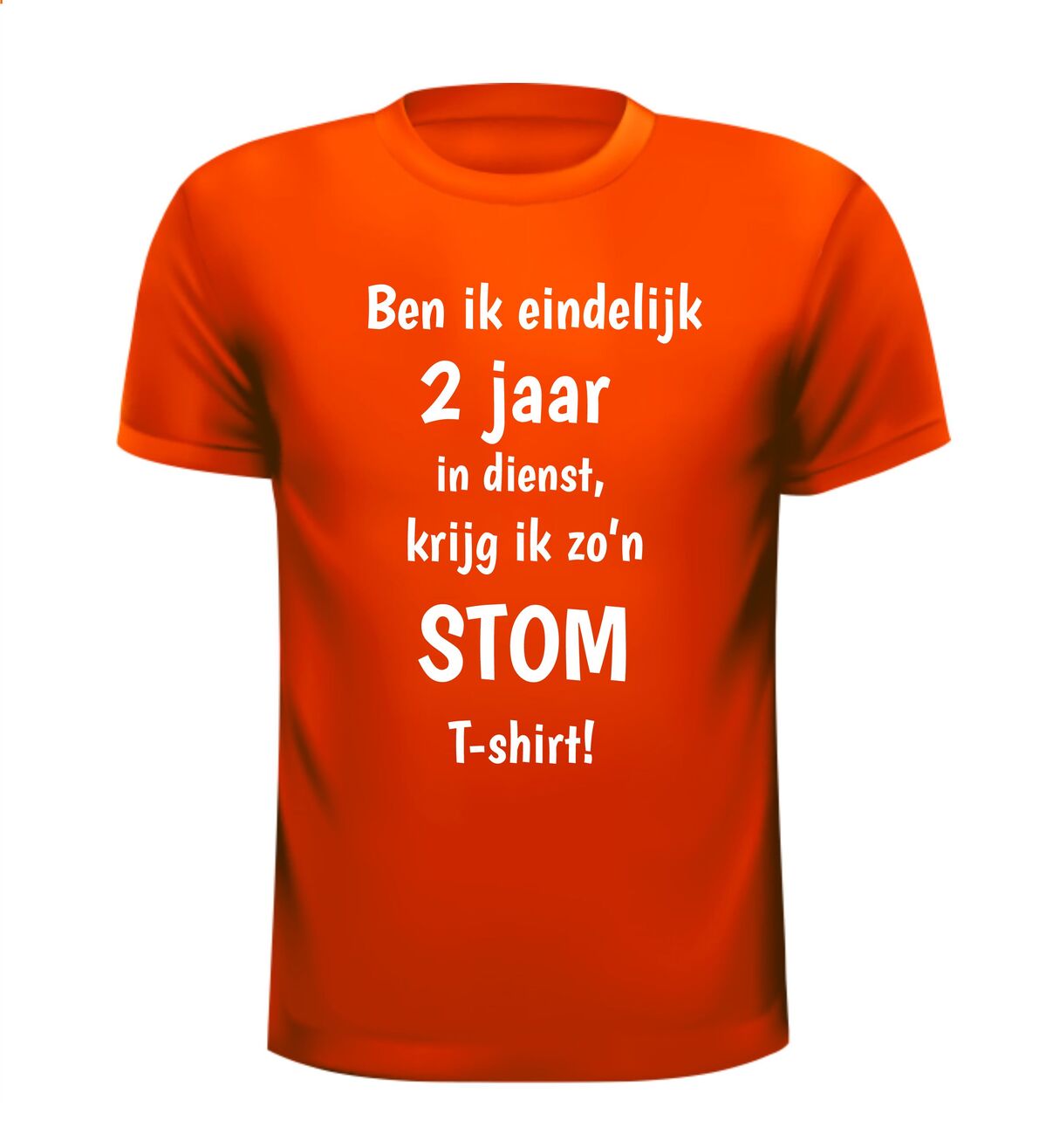 Na twee jaar hard werken, meedenken, oplossen, bijspringen en waarschijnlijk meer doen dan in je functieomschrijving stond, verdien je natuurlijk… een t-shirt. En niet zomaar één, maar het iconische “Ben ik eindelijk 2 jaar in dienst, krijg ik zo’n stom shirt” jubileumshirt — hét shirt voor iedereen die hun werkjubileum graag viert met een flinke dosis humor.