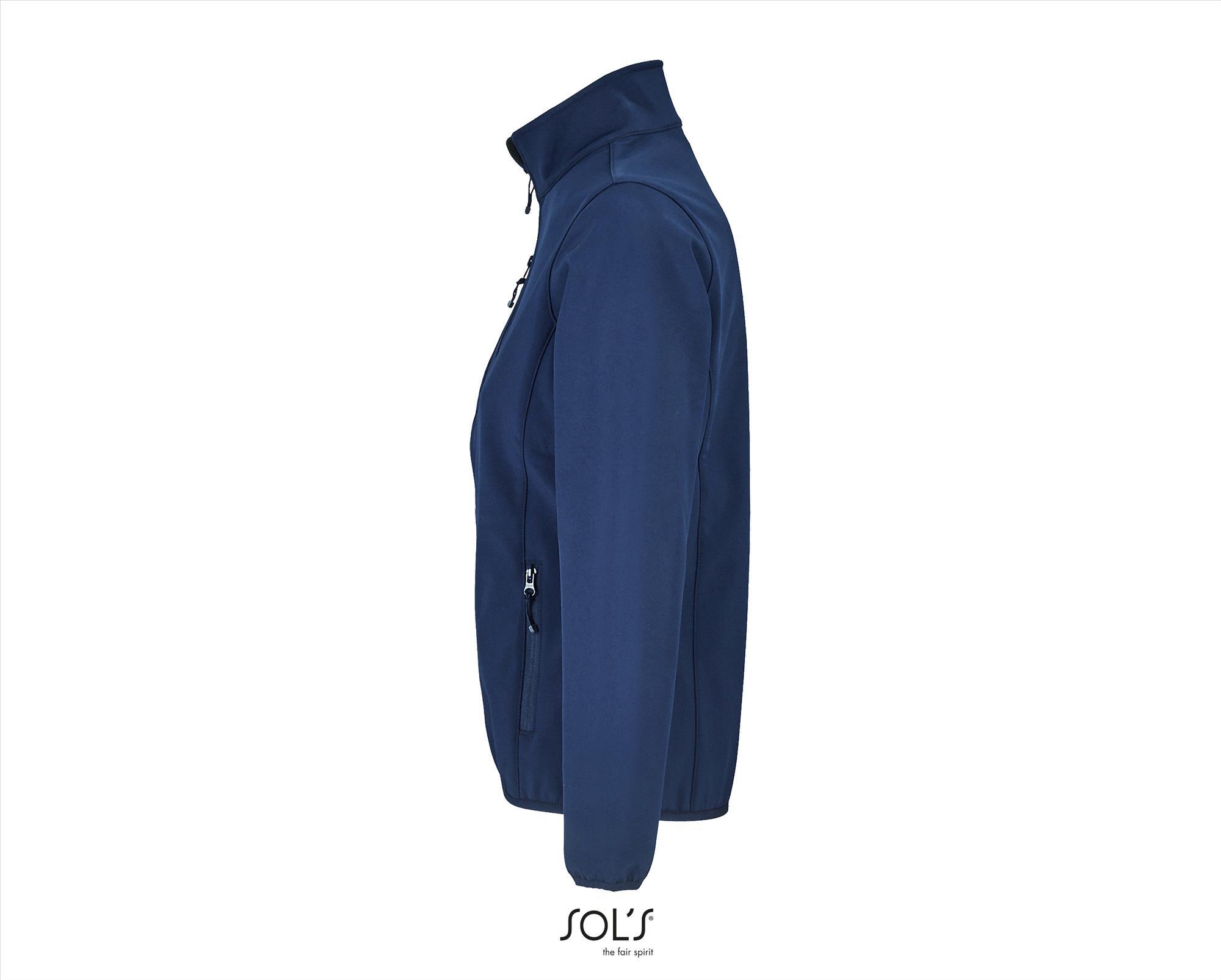 3 laags Softshell Jacket donkerblauw voor dames met gerecycled polyester. Merk:SOL'S Falcon Women. Materiaal:94% Recycled Polyester - 6% Elastane. Dikte: 270 g/m2. Foto met model erop is een sfeer foto kleur buiten beschouwing houden. Land van herkomst:Bangladesh.