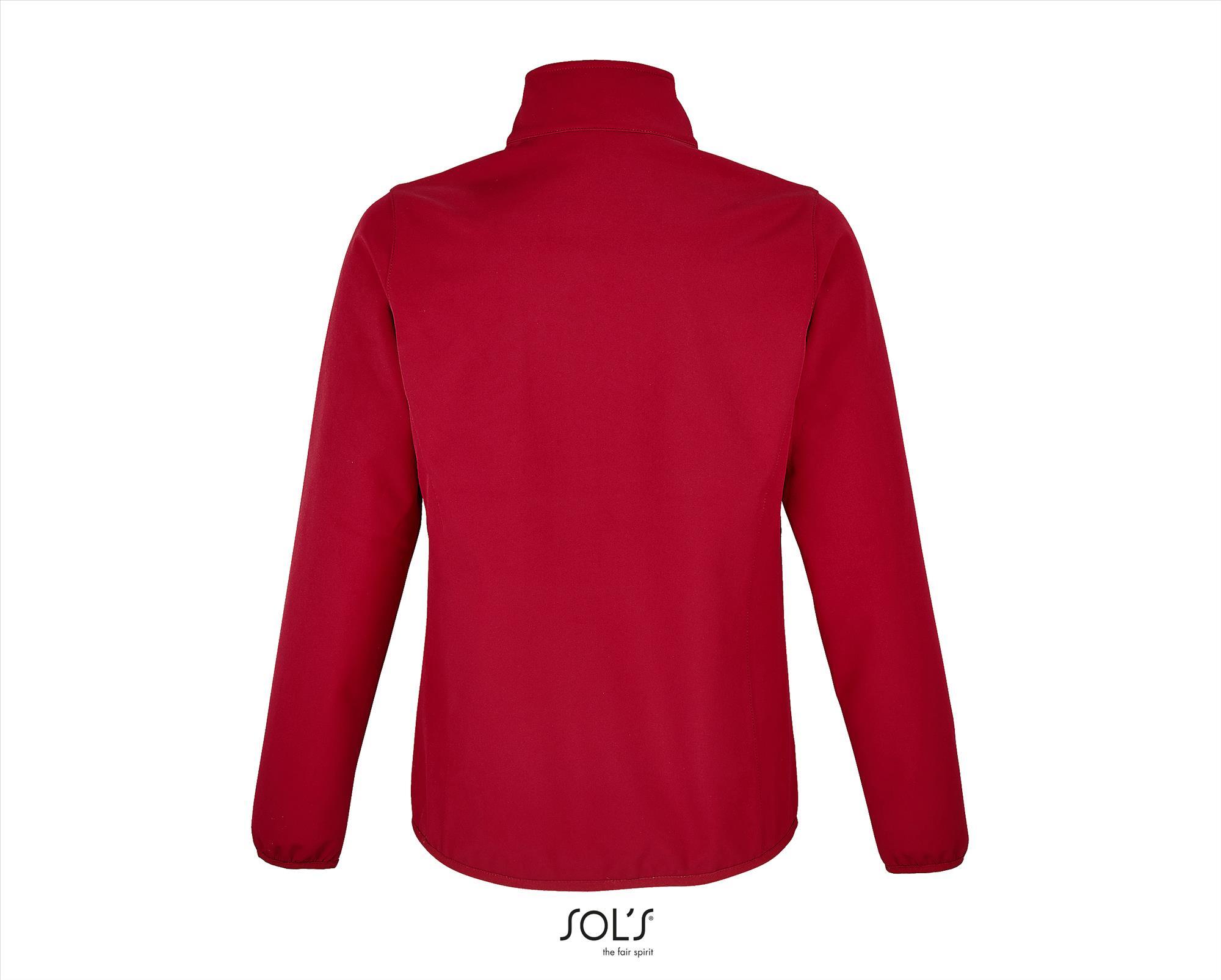 3 laags Softshell Jacket peper rood voor dames met gerecycled polyester. Merk:SOL'S Falcon Women. Materiaal:94% Recycled Polyester - 6% Elastane. Dikte: 270 g/m2. Foto met model erop is een sfeer foto kleur buiten beschouwing houden. Land van herkomst:Bangladesh.
