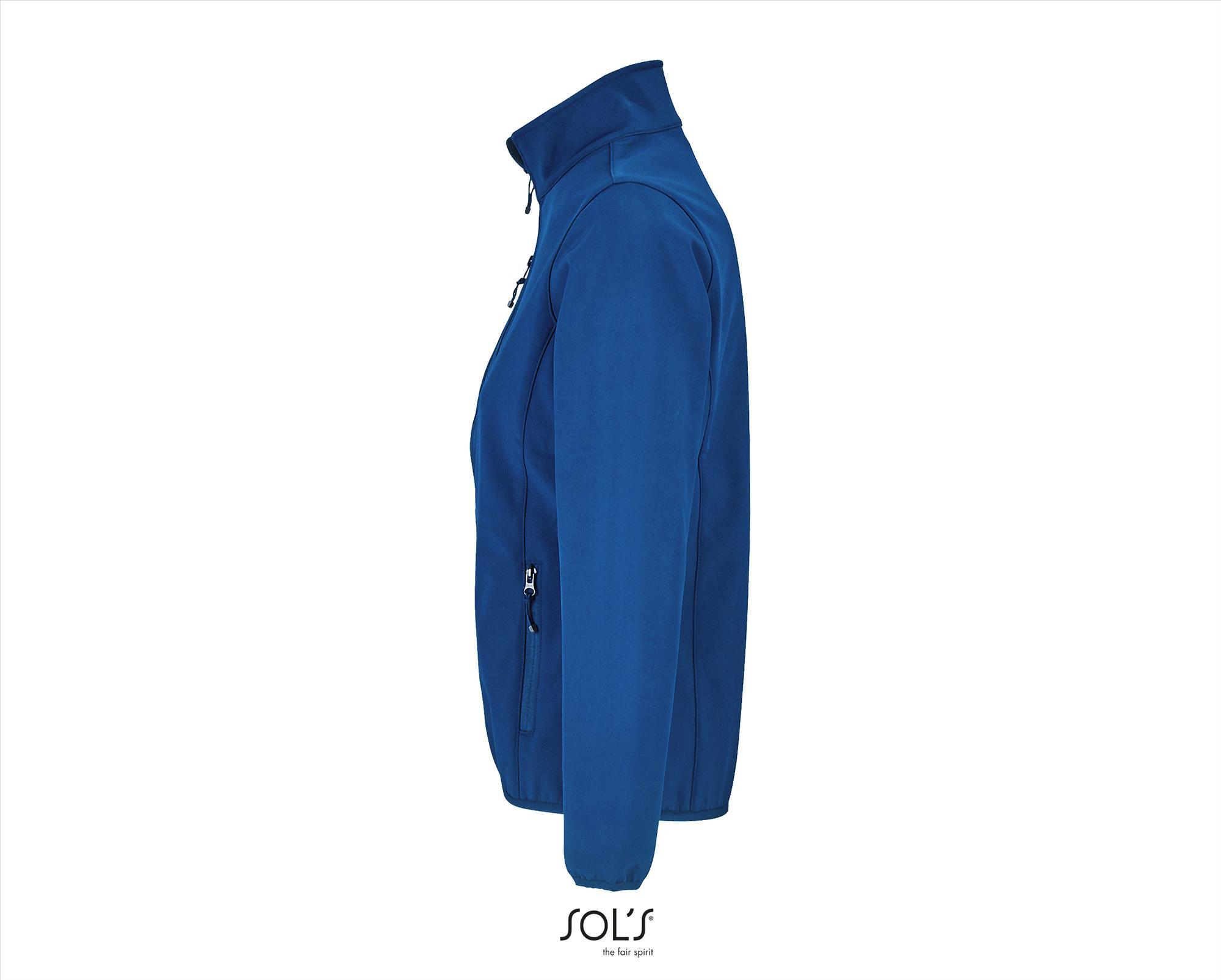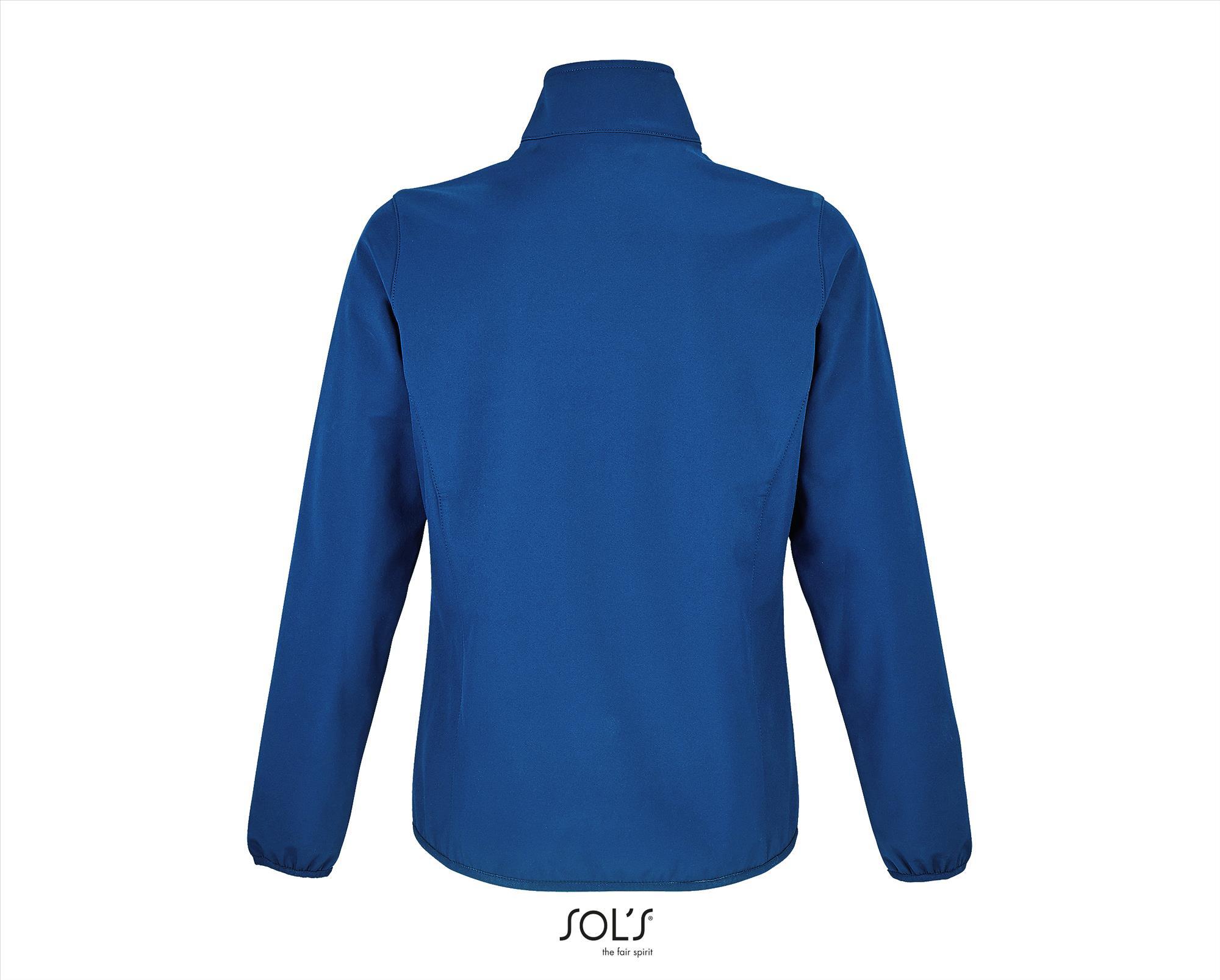 3 laags Softshell Jacket royal blauw voor dames met gerecycled polyester. Merk:SOL'S Falcon Women. Materiaal:94% Recycled Polyester - 6% Elastane. Dikte: 270 g/m2. Foto met model erop is een sfeer foto kleur buiten beschouwing houden. Land van herkomst:Bangladesh.