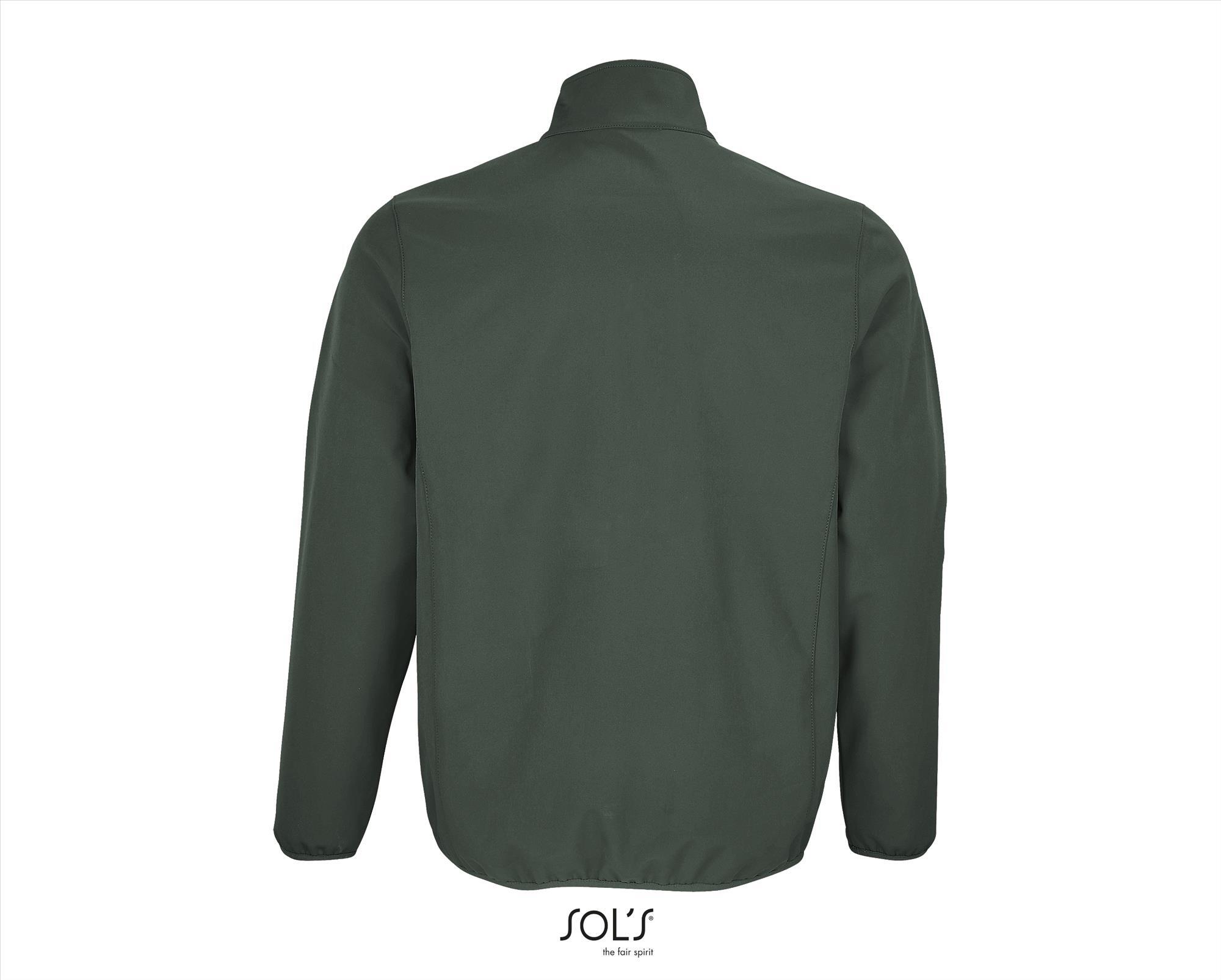 3 laags Softshell Jacket bos groen voor hem met gerecycled polyester. Merk:SOL'S Falcon Women. Materiaal:94% Recycled Polyester - 6% Elastane. Dikte: 270 g/m2. Foto met model erop is een sfeer foto kleur buiten beschouwing houden. Land van herkomst:Bangladesh.