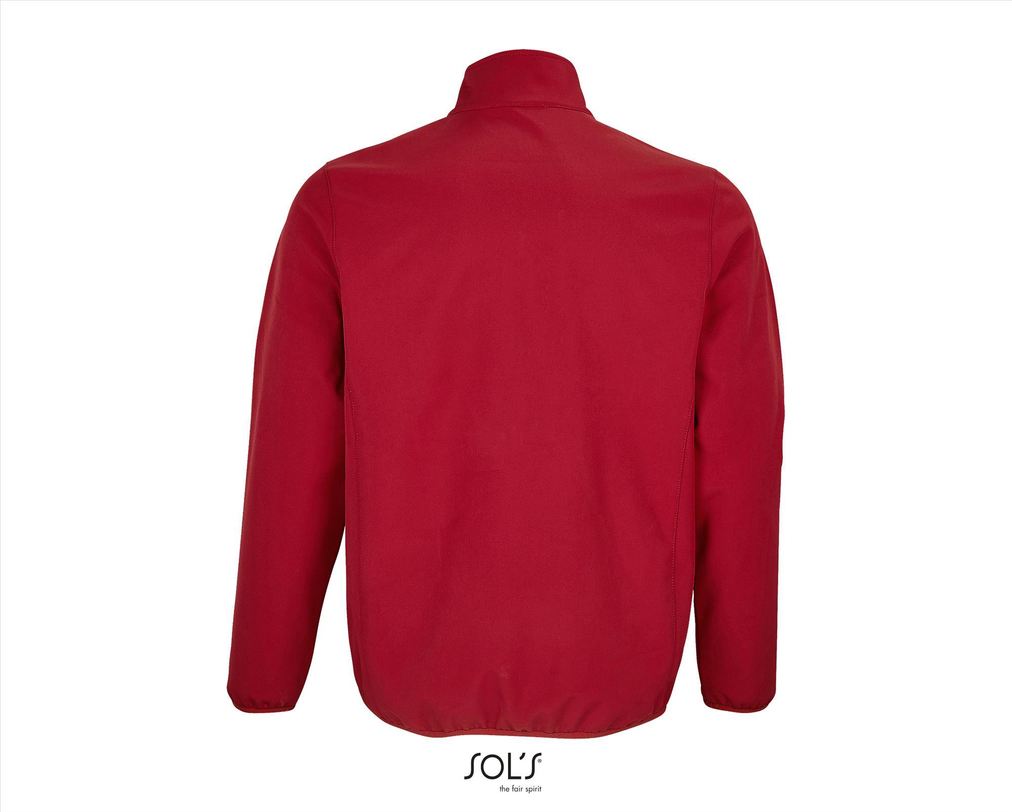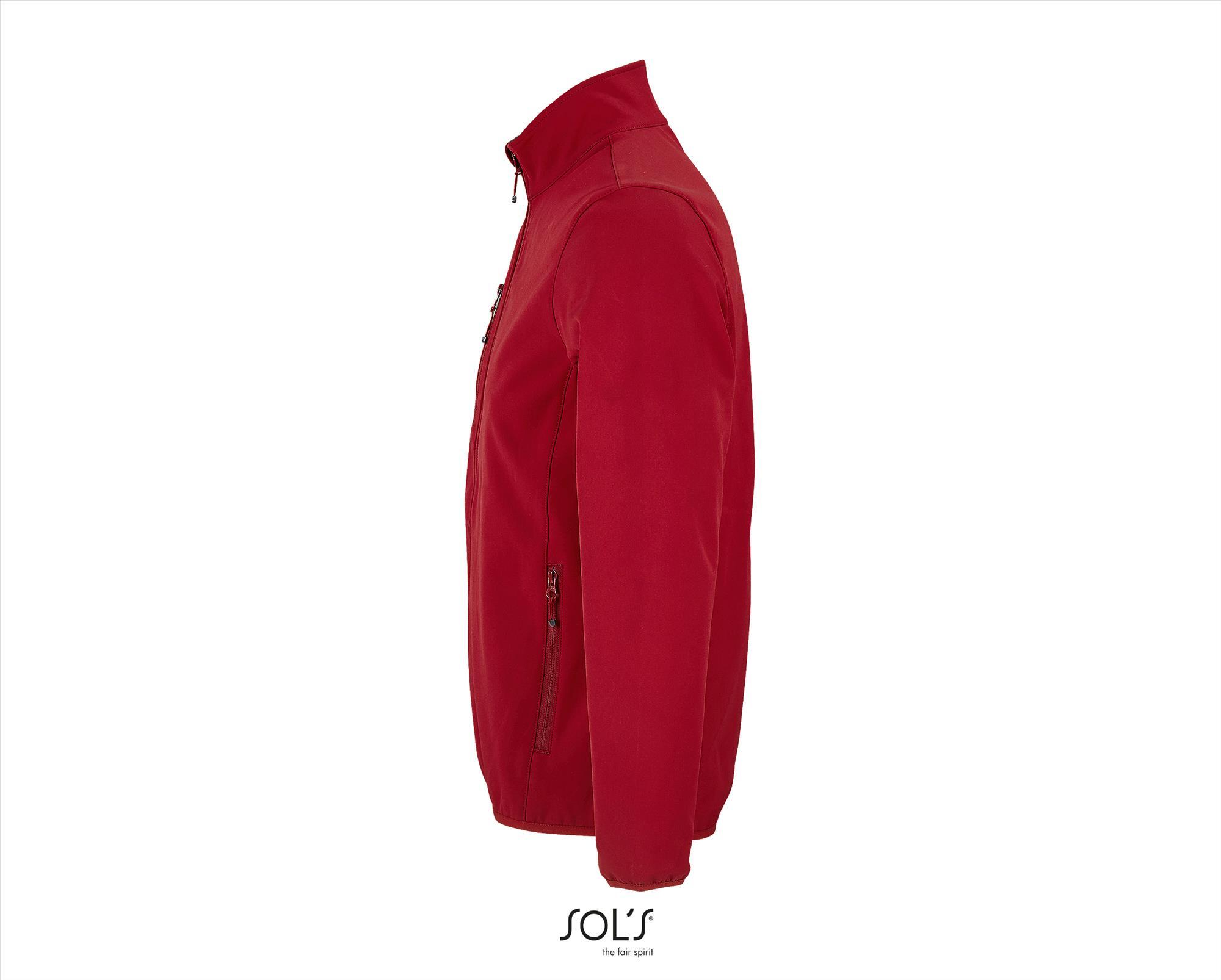 3 laags Softshell Jacket peper rood voor hem met gerecycled polyester. Merk:SOL'S Falcon Women. Materiaal:94% Recycled Polyester - 6% Elastane. Dikte: 270 g/m2. Foto met model erop is een sfeer foto kleur buiten beschouwing houden. Land van herkomst:Bangladesh.