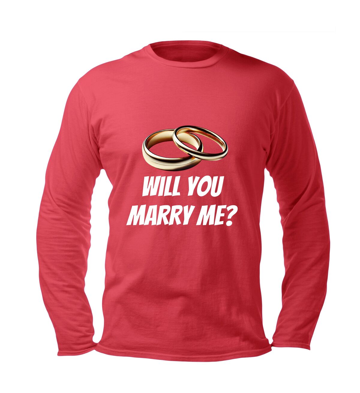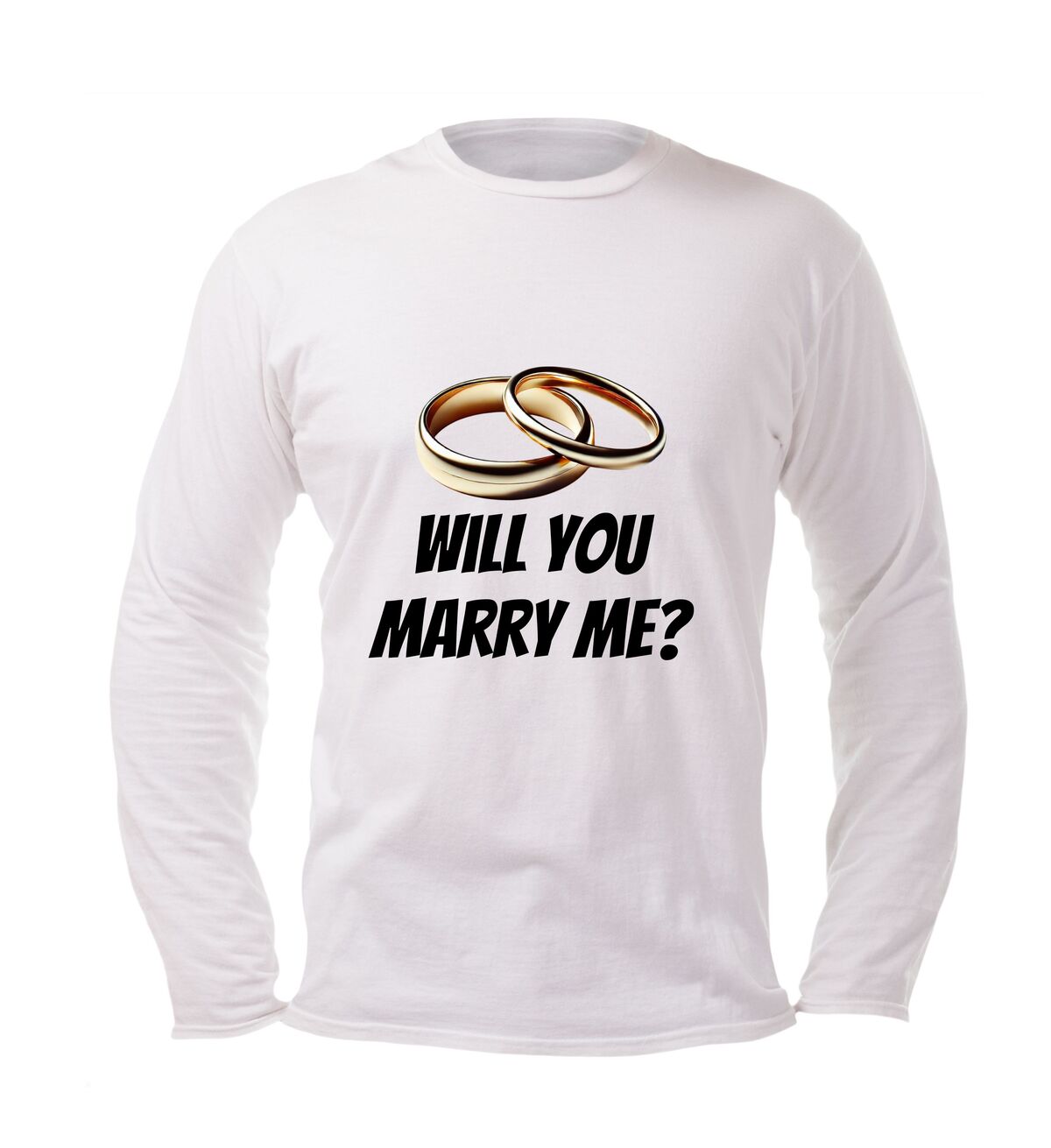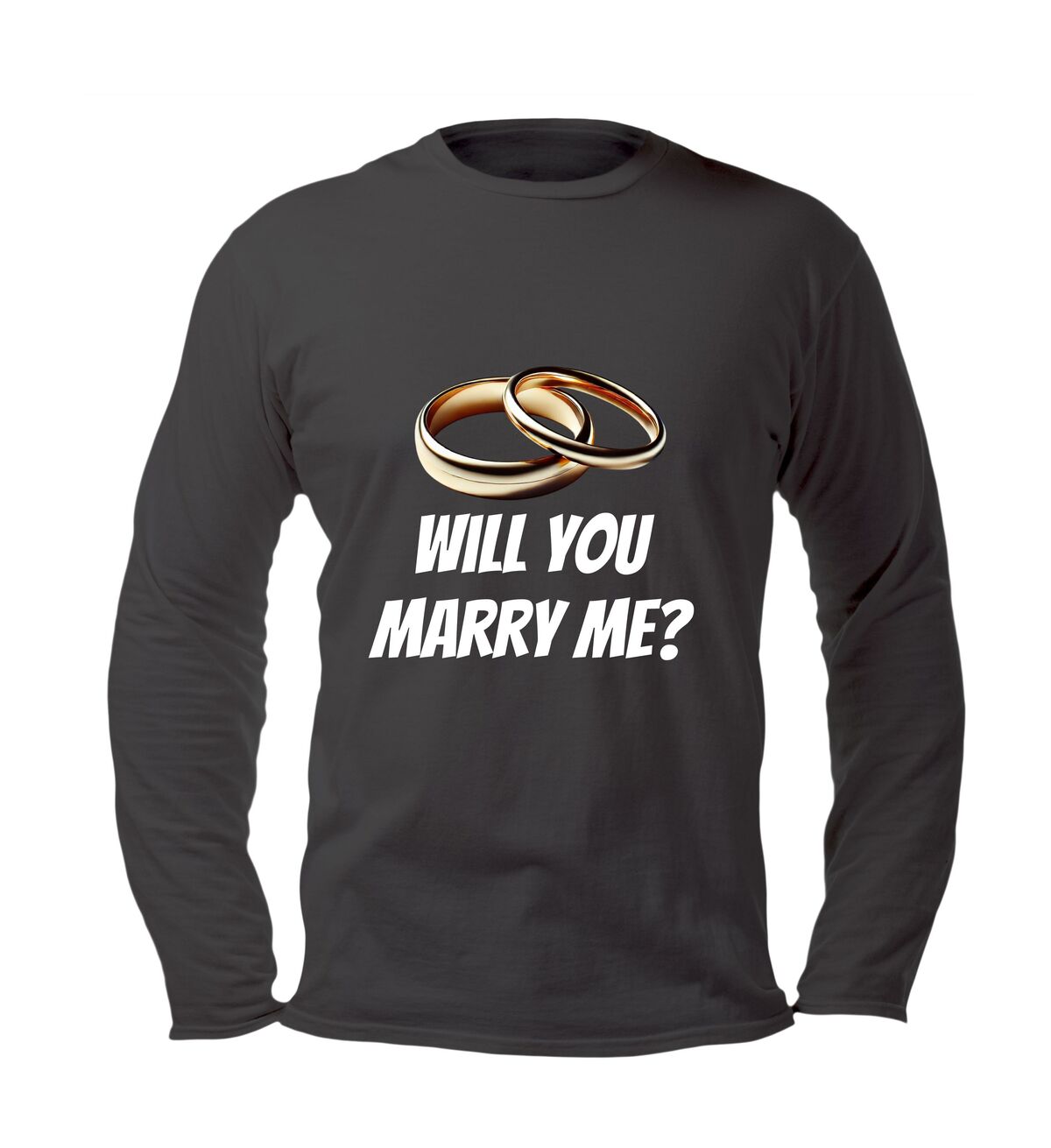 Deze romantische aanzoek longsleeve is geschikt voor iedereen die op een creatieve manier de vraag Wil je met mij trouwen? wil stellen. Een origineel verloving cadeau en een bijzondere manier om jullie liefdesverhaal officieel te beginnen.