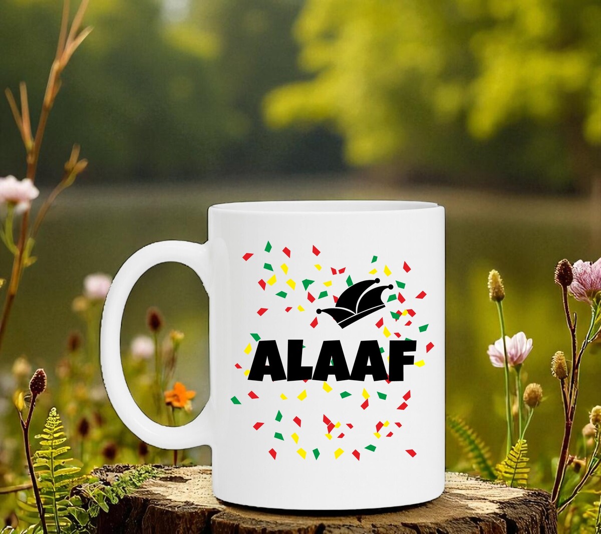 Witte mok met feestelijke opdruk alaaf. Voor de echte carnavalvierder.