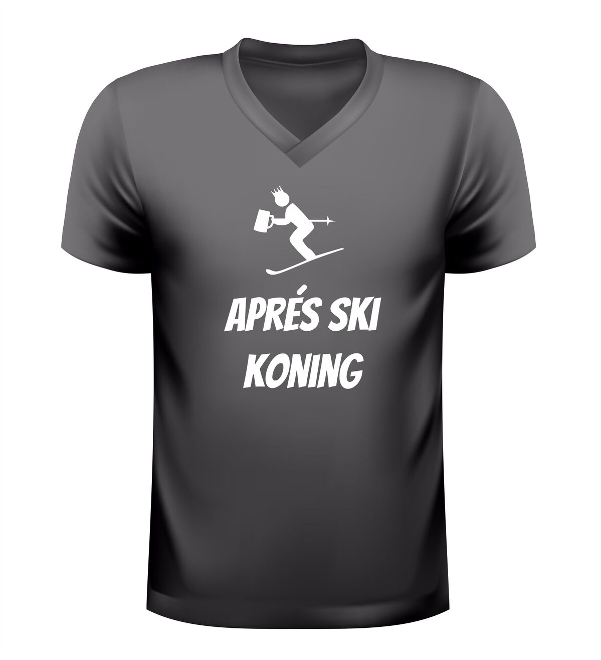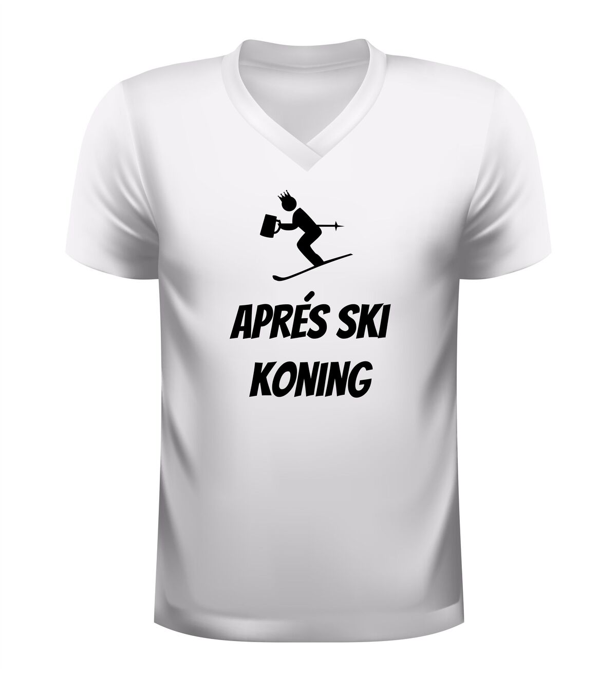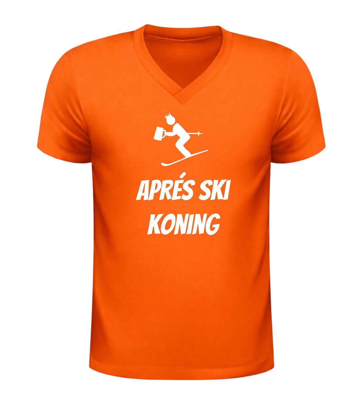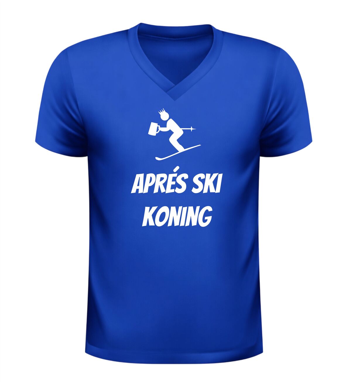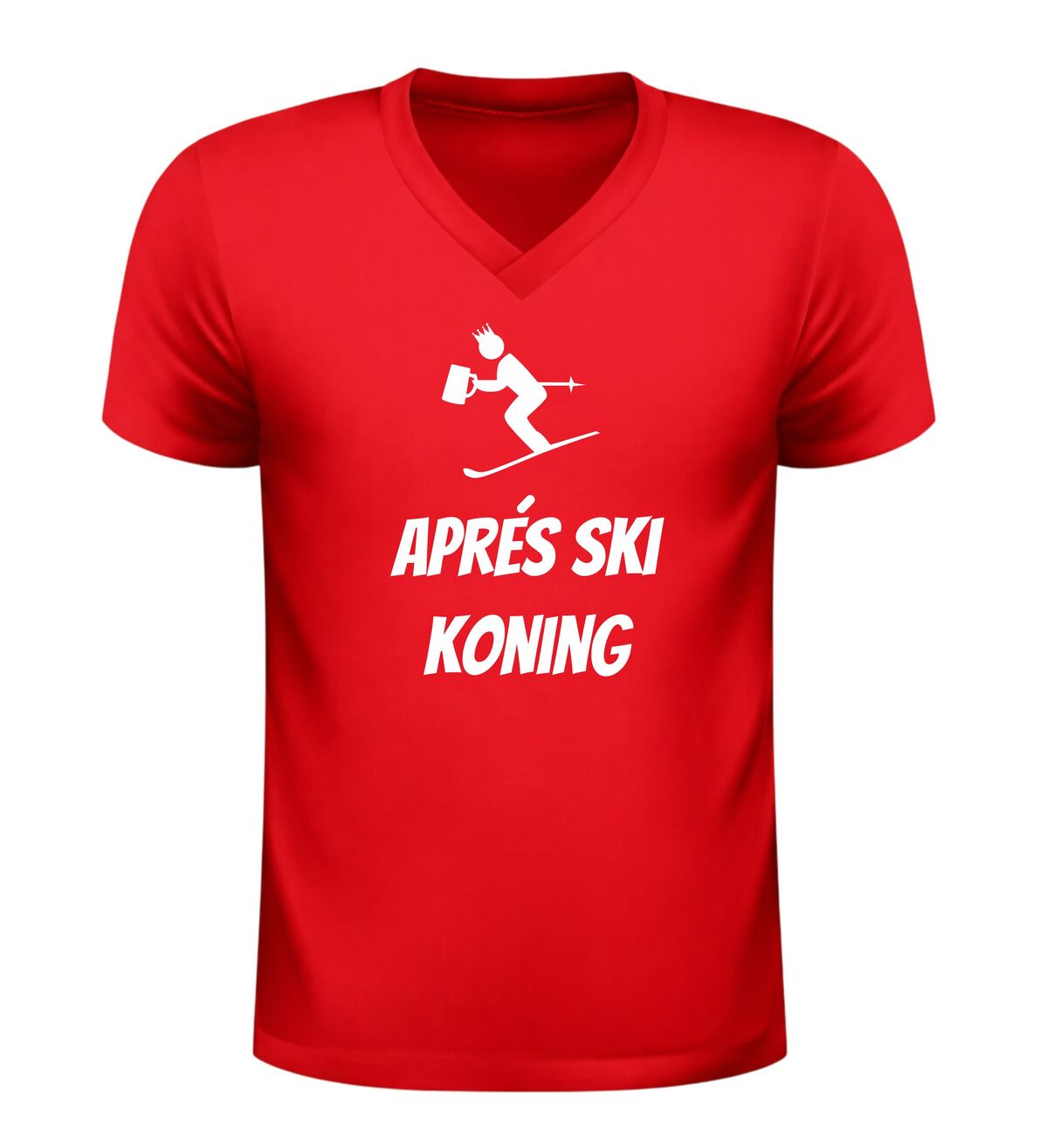 Ben je op zoek naar een après ski koning shirt, een grappig V-hals t-shirt voor wintersport, of een origineel cadeau voor een echte feestganger, dan is dit shirt een uitstekende keuze. Met dit shirt ben jij zonder twijfel de koning van de après ski.