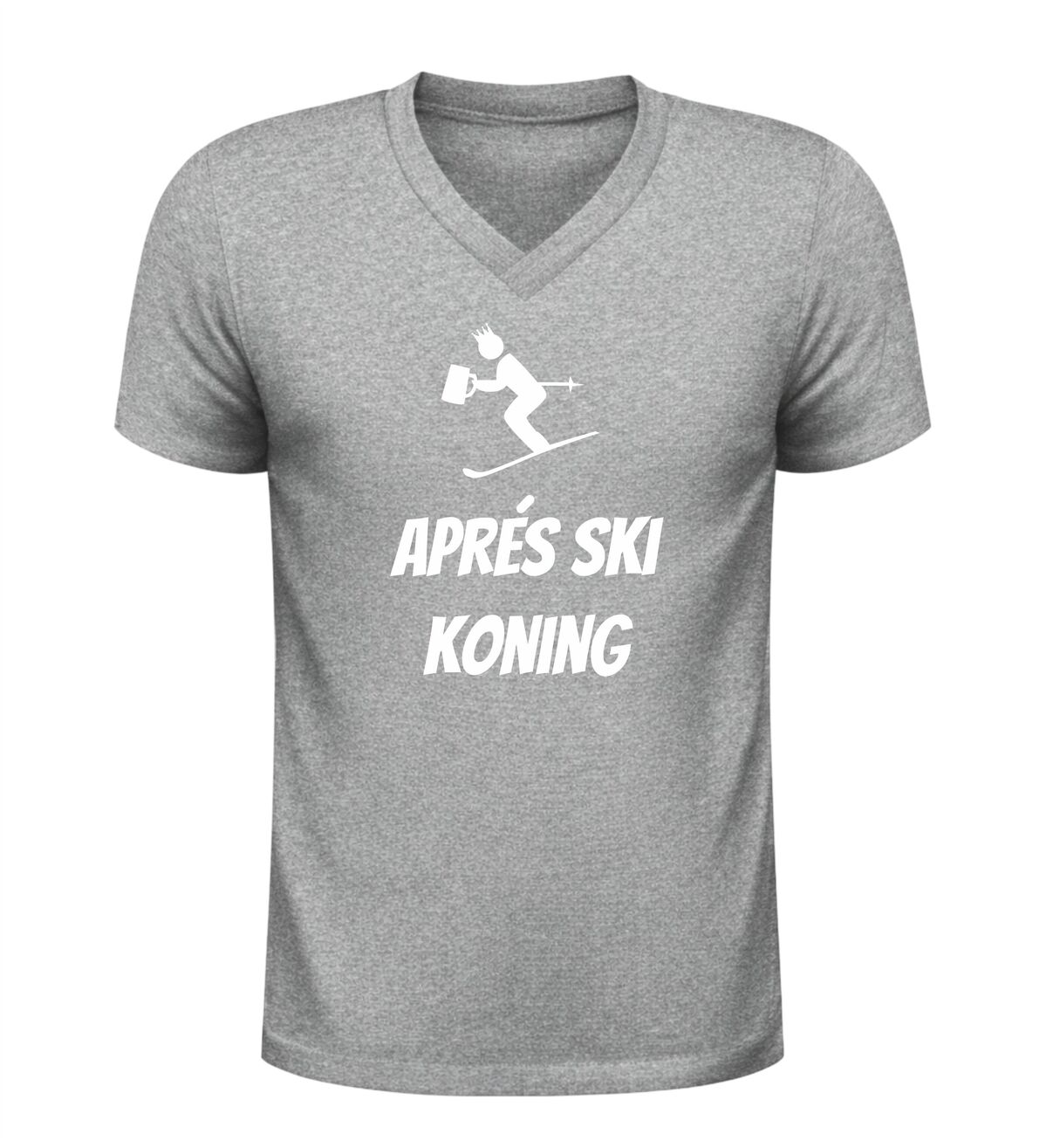 Dit après ski koning V-hals T-shirt is het ultieme shirt voor iedereen die tijdens de wintersport graag de show steelt. De opvallende tekst Après Ski Koning maakt dit grappige après ski shirt perfect voor feestjes in de skihut, après ski avonden en wintersportvakanties. Het shirt straalt humor, gezelligheid en zelfvertrouwen uit en is een echte must-have voor liefhebbers van après ski en wintersport.