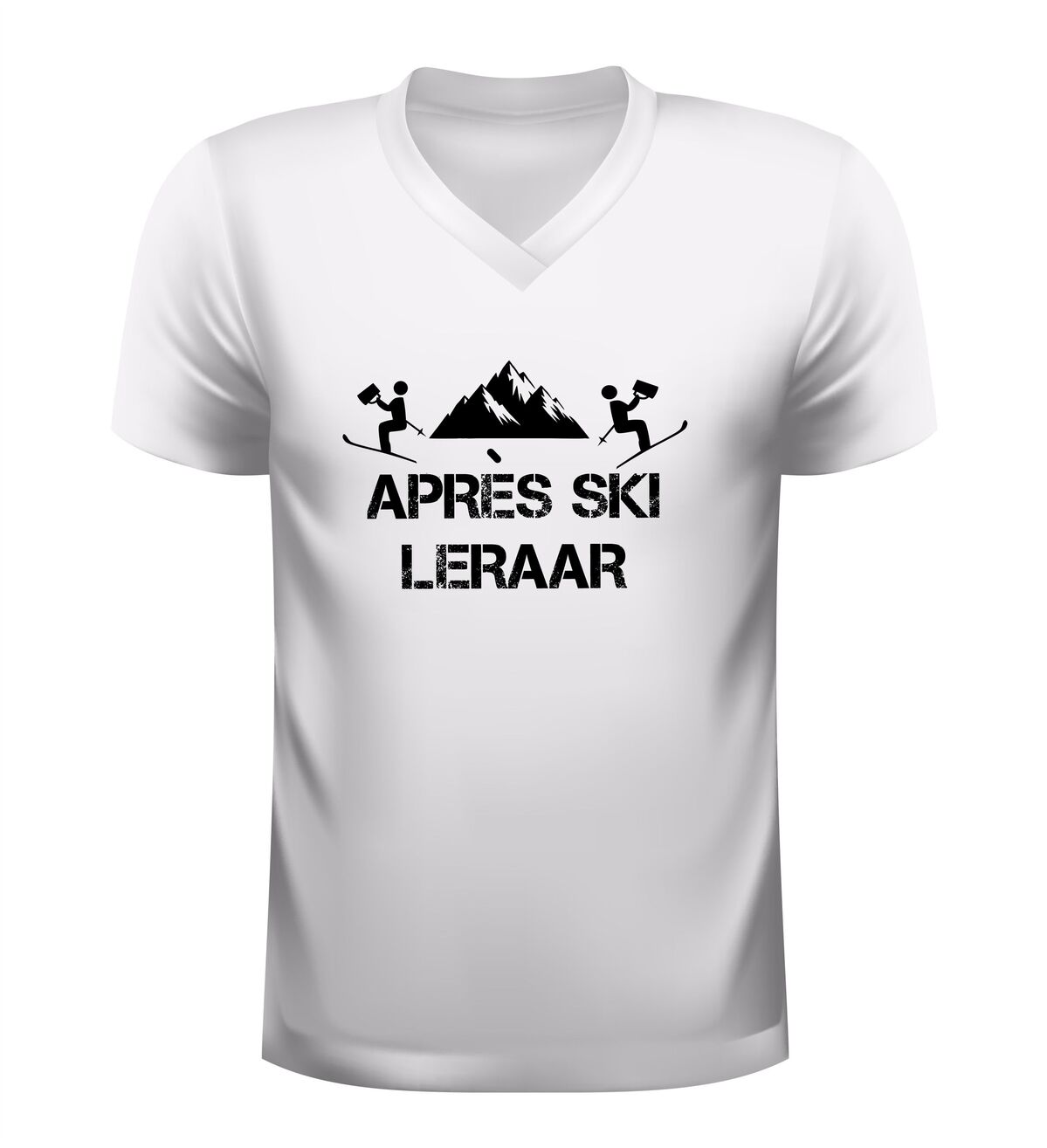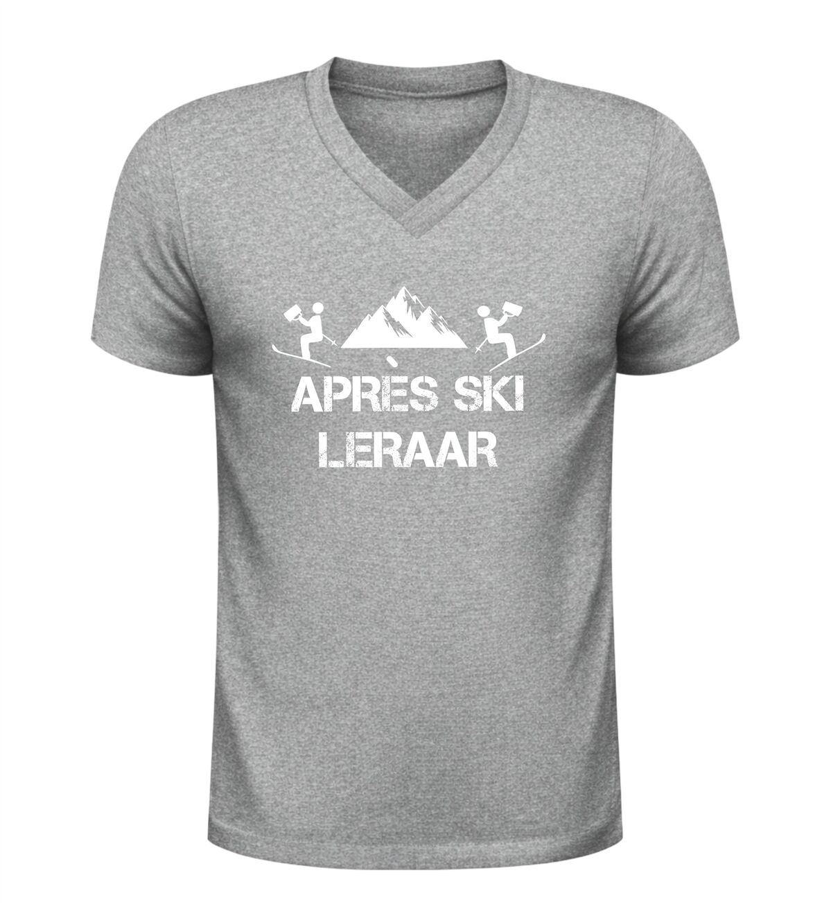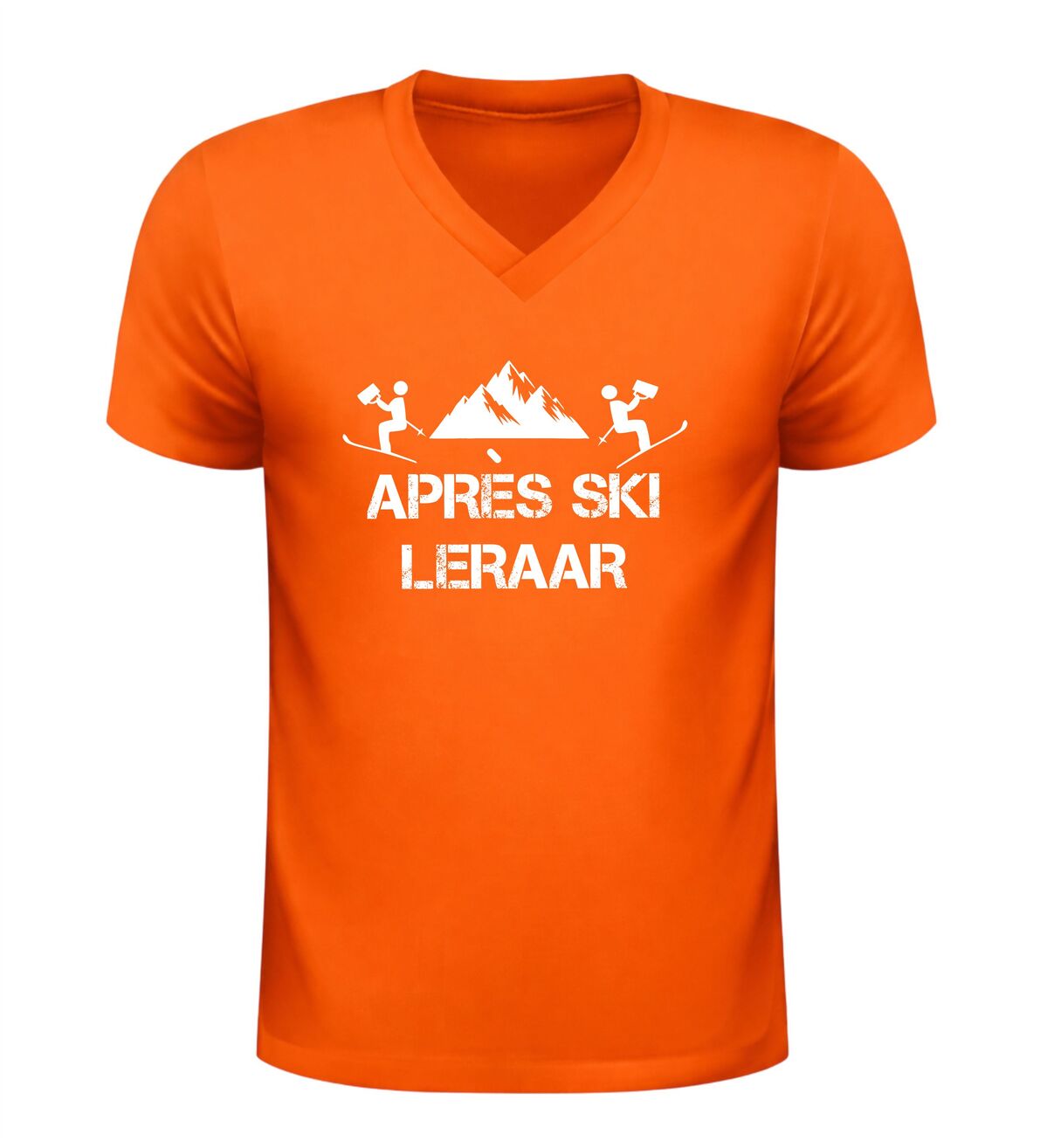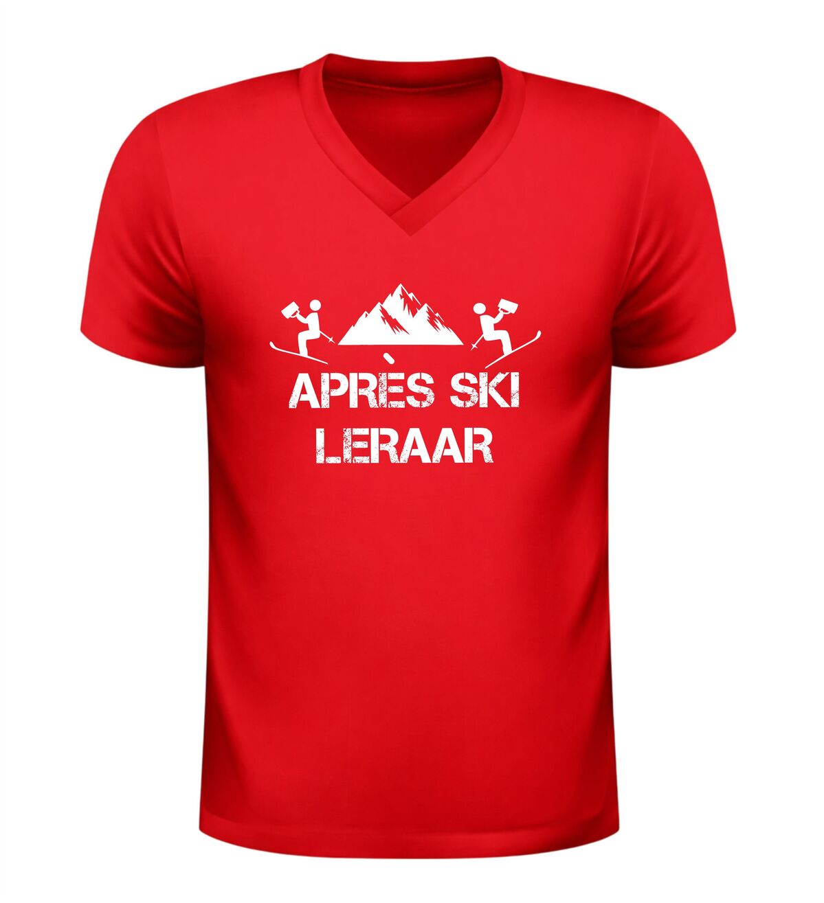 Het Après skileraar v-hals shirt voor heren is het perfecte shirt voor iedereen die zichzelf met een knipoog een echte apres ski leraar noemt. Dit opvallende apres ski leraar shirt is ideaal voor wintersport, après-ski feesten en gezellige avonden in de sneeuw of in de kroeg. Met de duidelijke tekst apres skileraar laat je meteen zien dat jij de sfeer bepaalt tijdens elk après-ski moment.