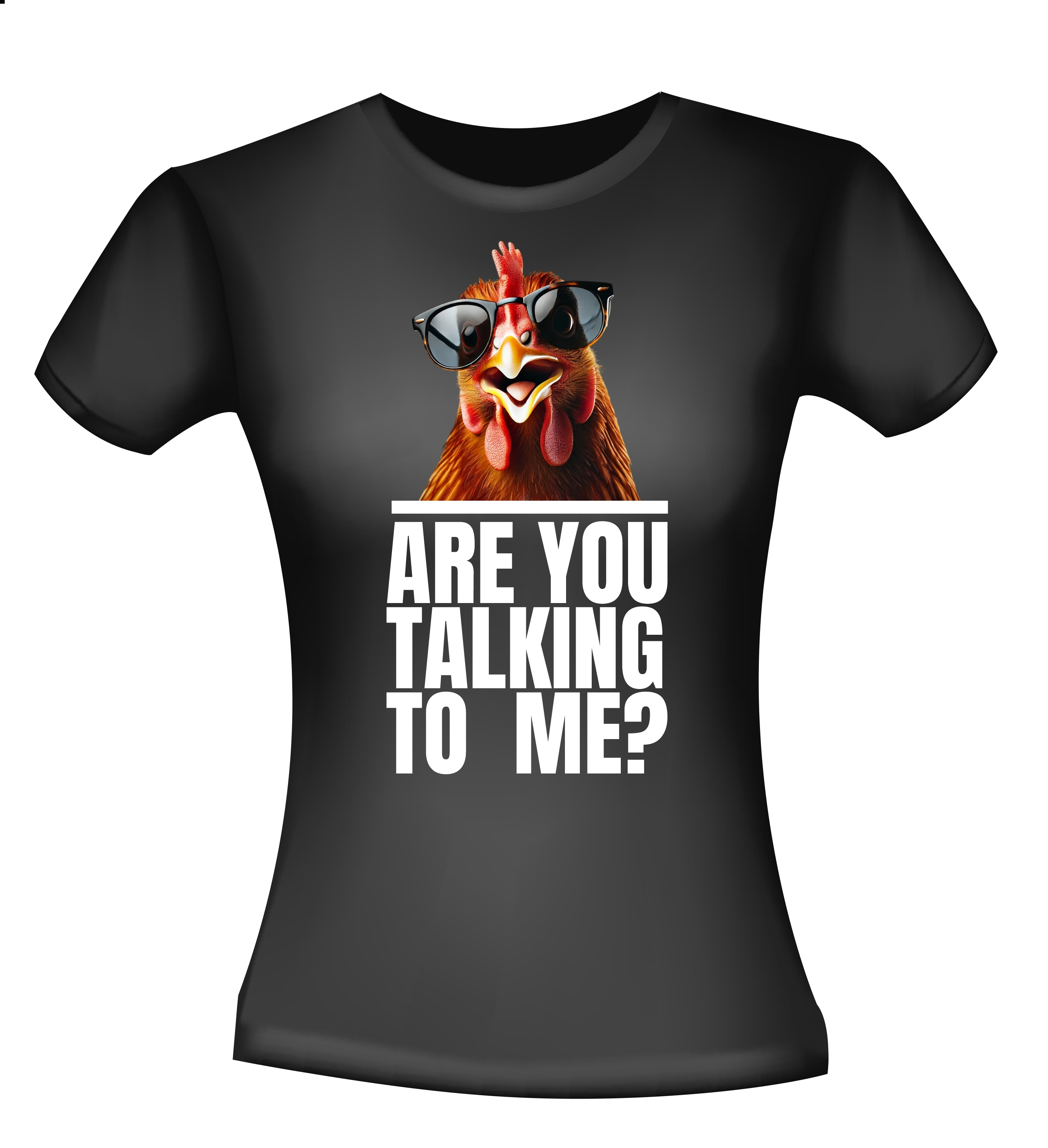 Een leuk een grappig kippen t-shirt met de tekst: are you talking to me?