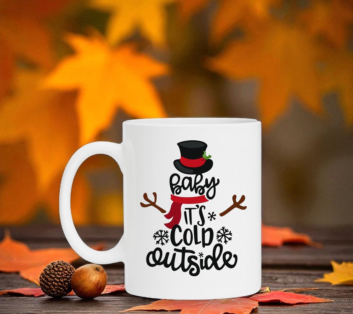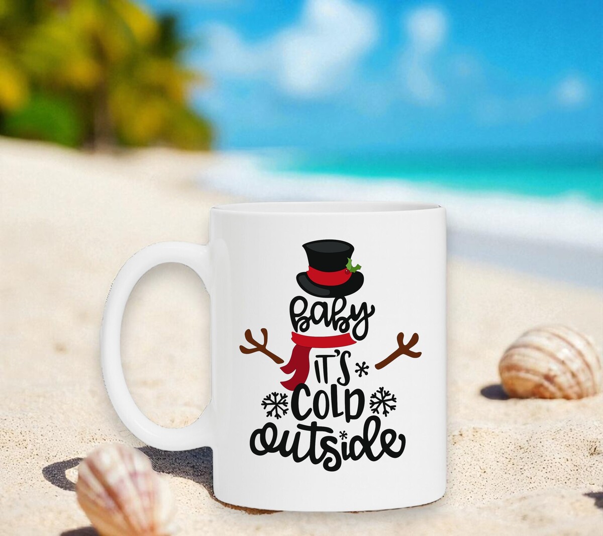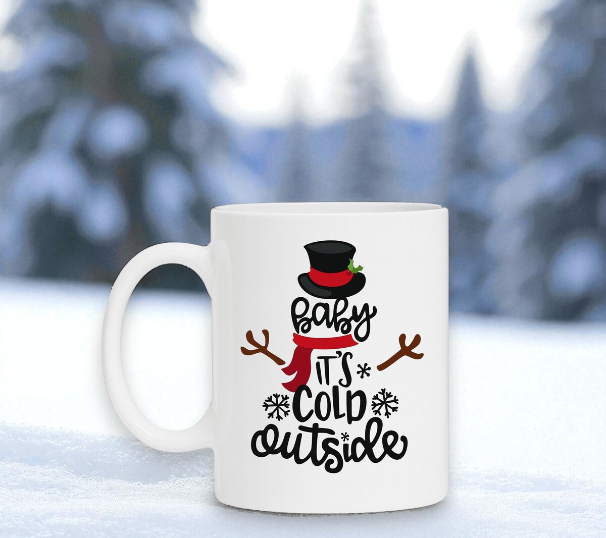 Witte kerst mok met een prachtige kerst print 'Baby it's cold outside'.