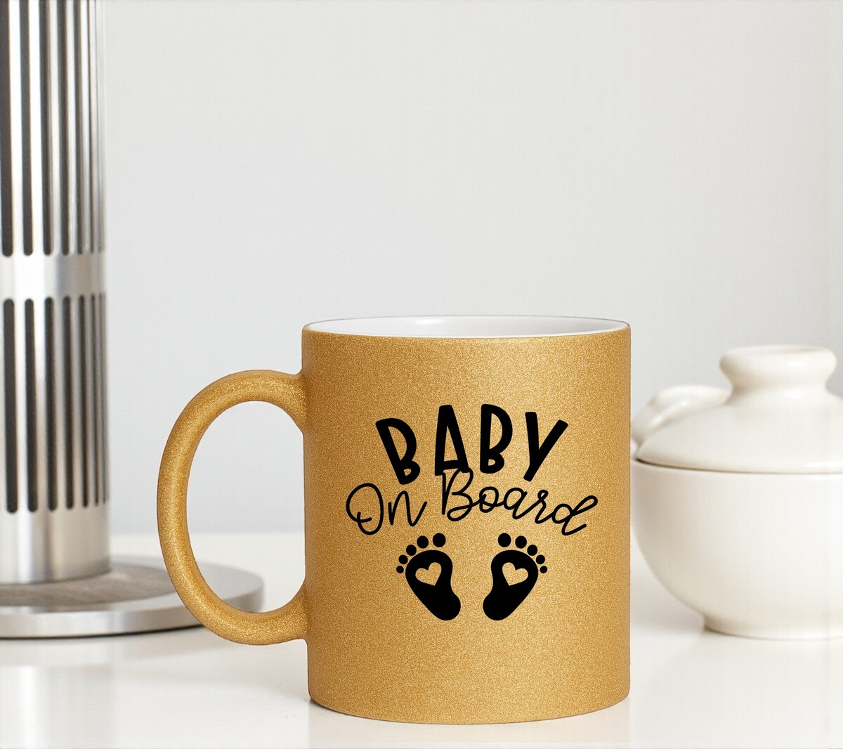 De gouden glittermok heeft een hoogte van 96 mm, een diameter van 80 mm en een inhoud van circa 330 ml. Door de glittercoating is deze mok niet geschikt voor de magnetron en wordt handwas aanbevolen om de opdruk en glans te behouden.