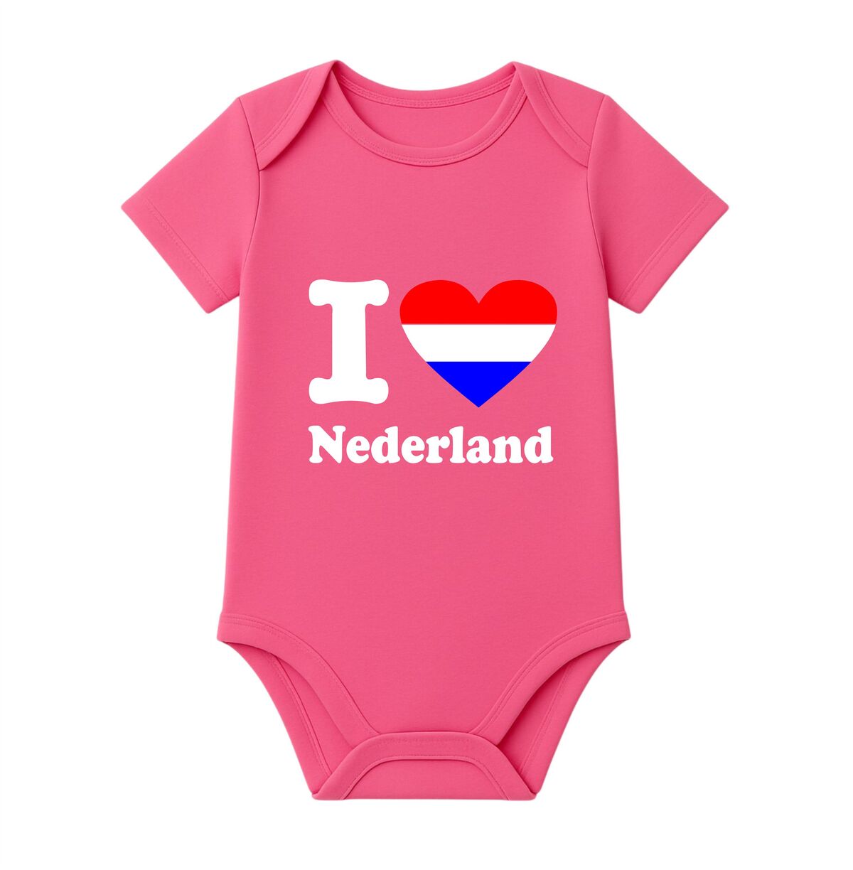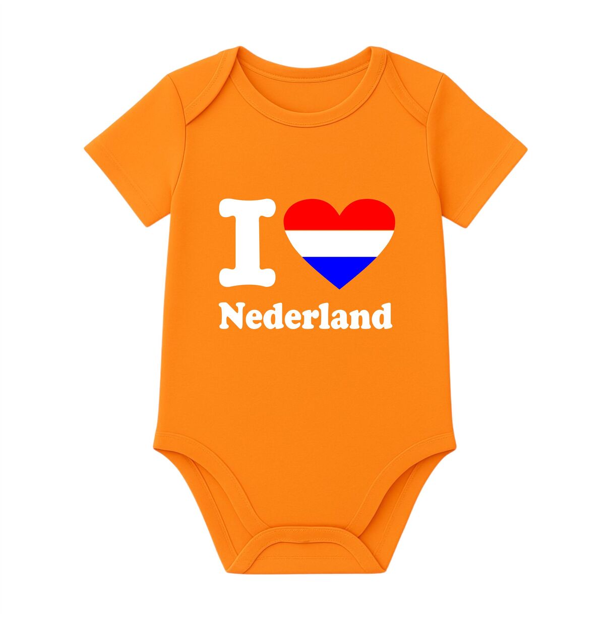 Laat zelfs de allerkleinsten hun liefde voor Nederland tonen met deze schattige baby romper met de tekst i love Nederland. Het hart is uitgevoerd in de rood wit blauwe kleuren van de Nederlandse vlag, waardoor deze romper direct een herkenbare en feestelijke uitstraling krijgt. Perfect voor trotse ouders die hun baby in Hollandse stijl willen kleden.