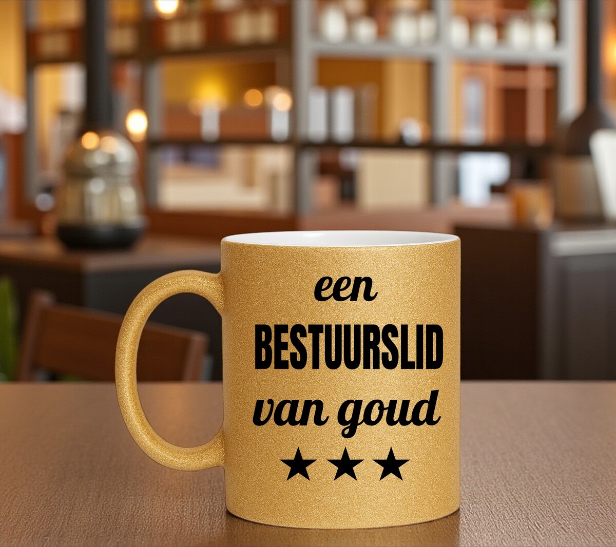Wil je laten zien dat jullie blij zijn met een bestuurslid? dan is deze gouden glitter mok met de tekst: een bestuurslid van goud zeker een goede cadeautip.