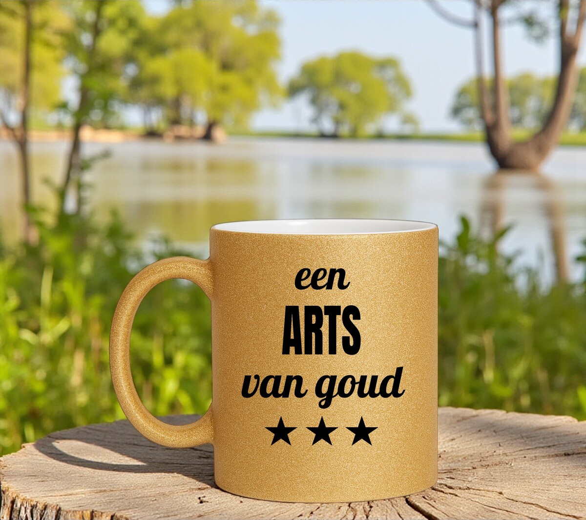 Gouden glitter mok voor een arts van goud. Leuk cadeau om te geven, maar zeker ook om te krijgen.