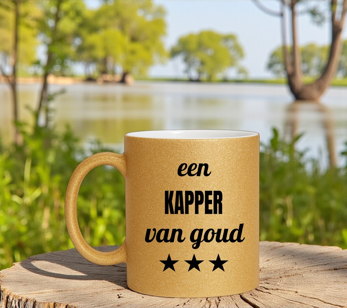 Zoek je een betaalbaar en orgineel cadeau voor iemand die kapper is? Dan is deze glitter gouden beker voor een kapper van goud een echte aanrader.