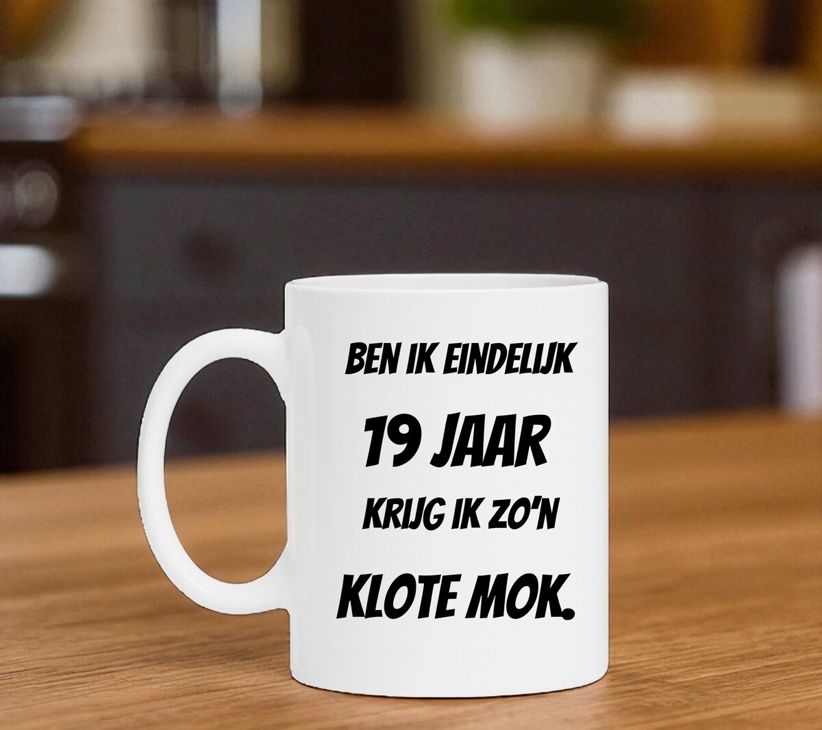 Ben ik eindelijk 19 jar krijg ik zo'n klote mok