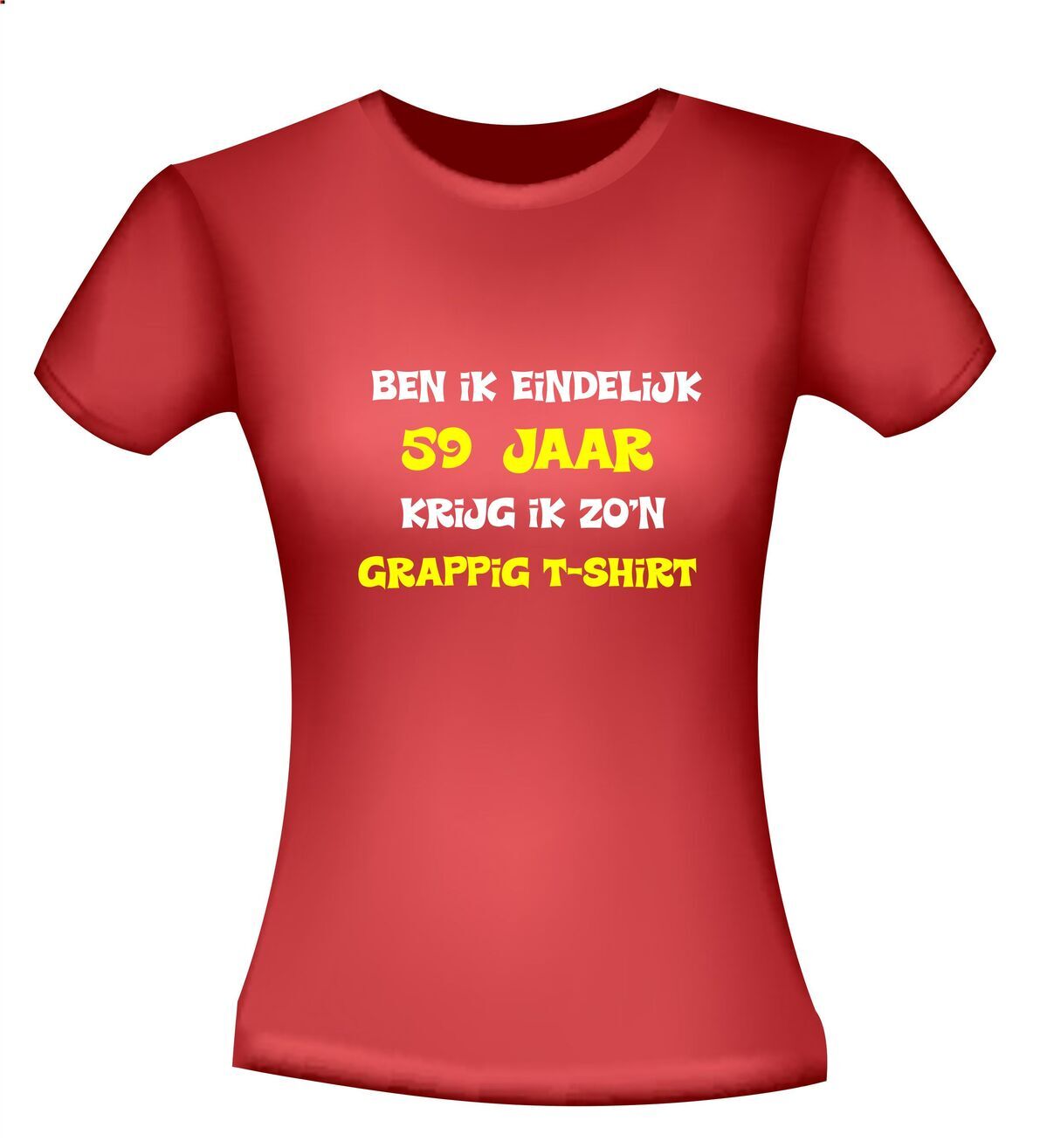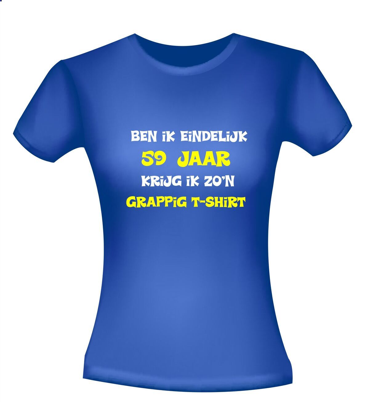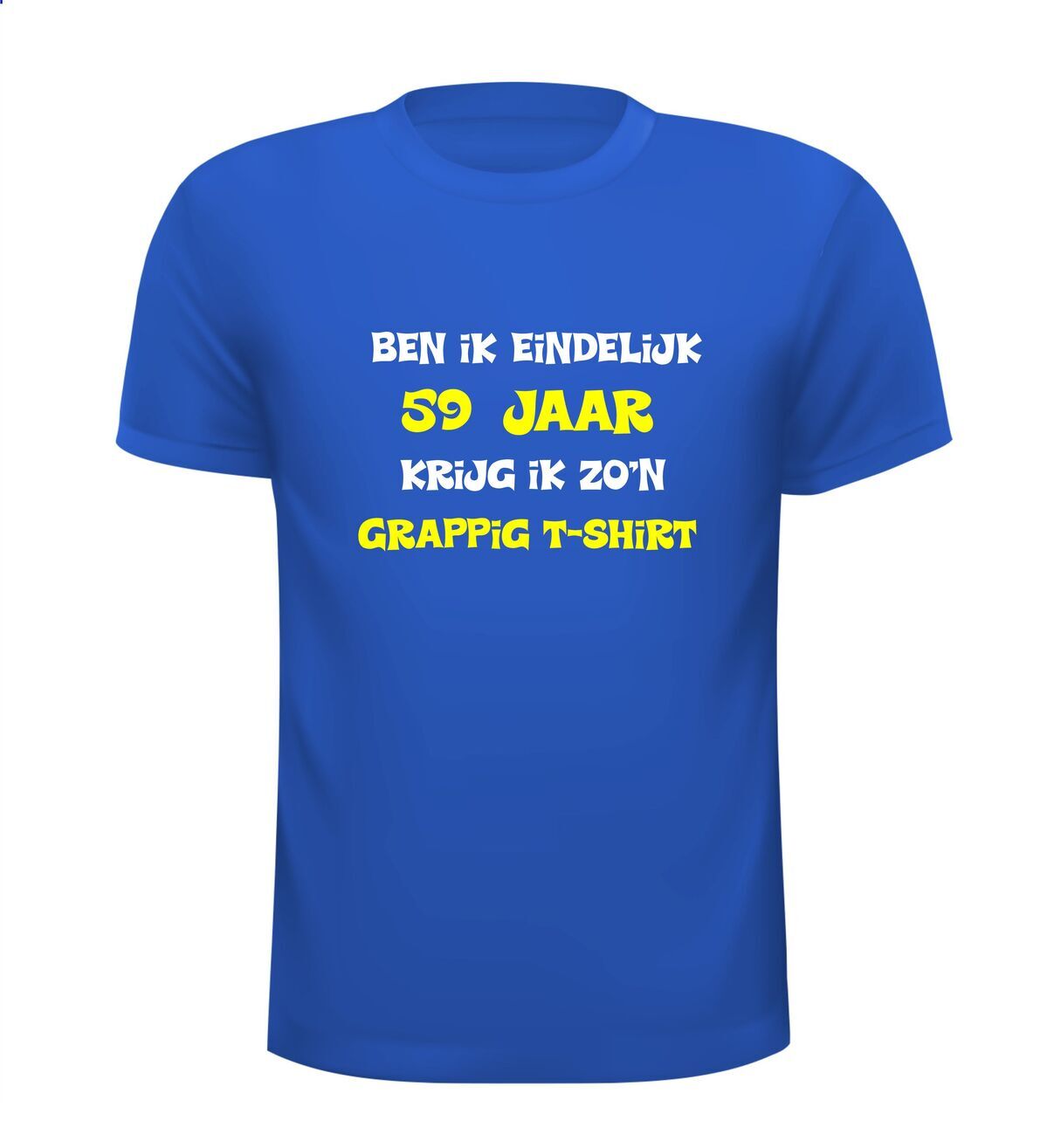 Wat geef je iemand die 59 jaar oud wordt. Natuurlijk dit grappige gekke verjaardags T-shirt. Trek hem of haar snel dit grappige T-shirt aan en alle gasten zullen fronzen bij het zien van het verjaardags T-shirt.