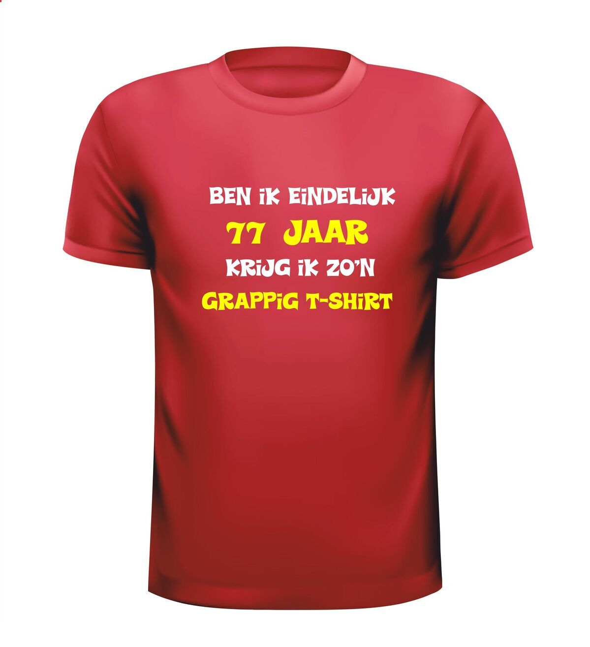 Verjaardagsfeestje van iemand die 77 jaar wordt wat geef je zo iemand die alles al heeft? Natuurlijk een leuk en gek T-shirt en zet hem of haar even in het zonnetje.