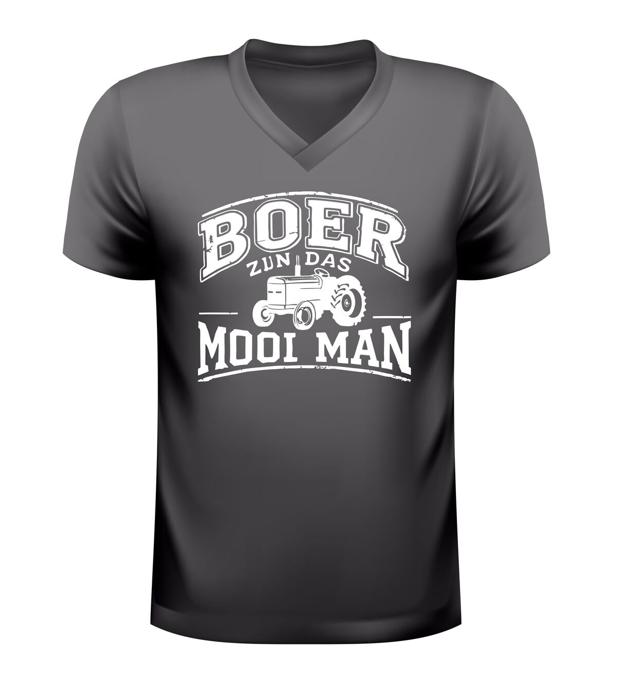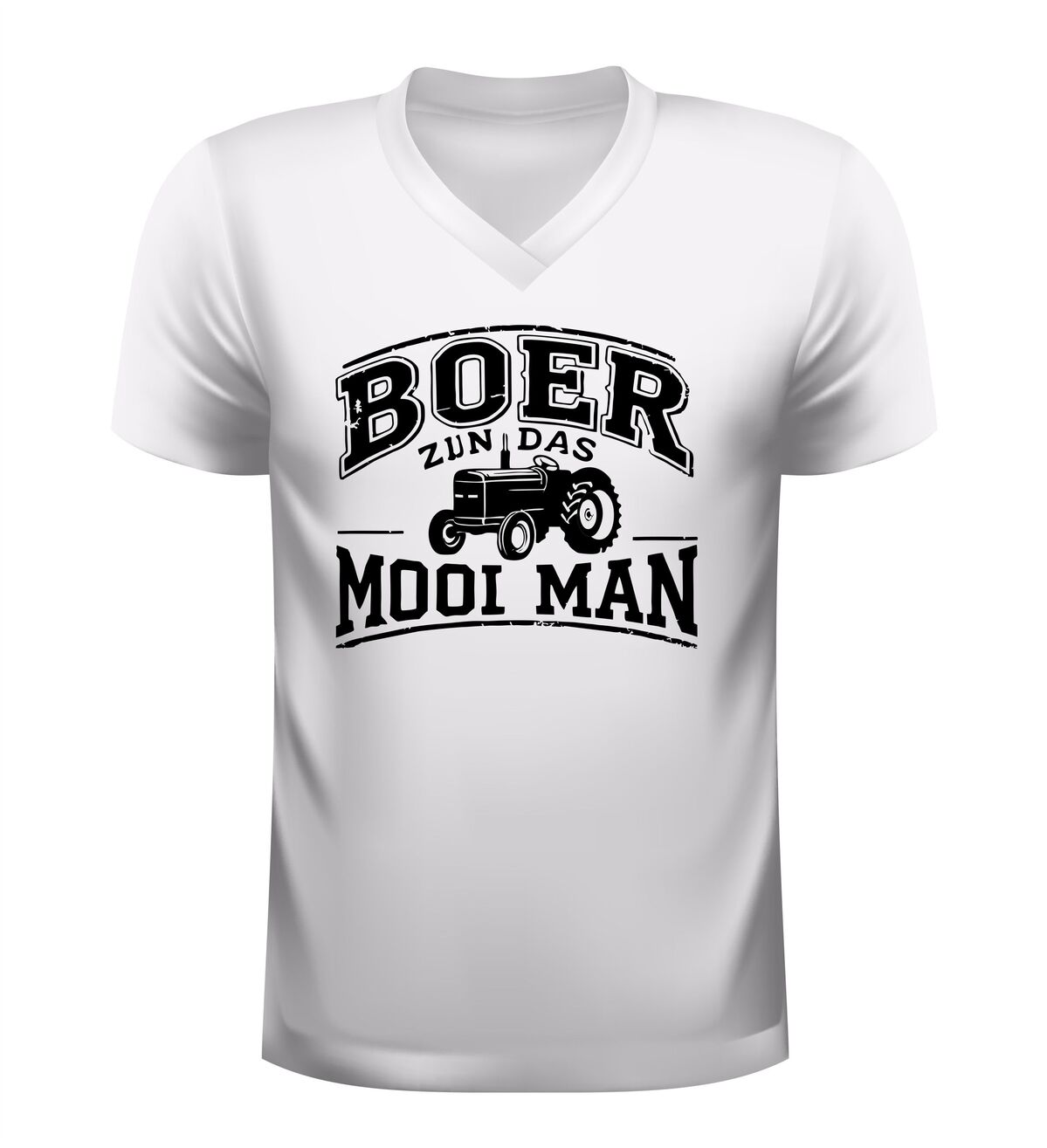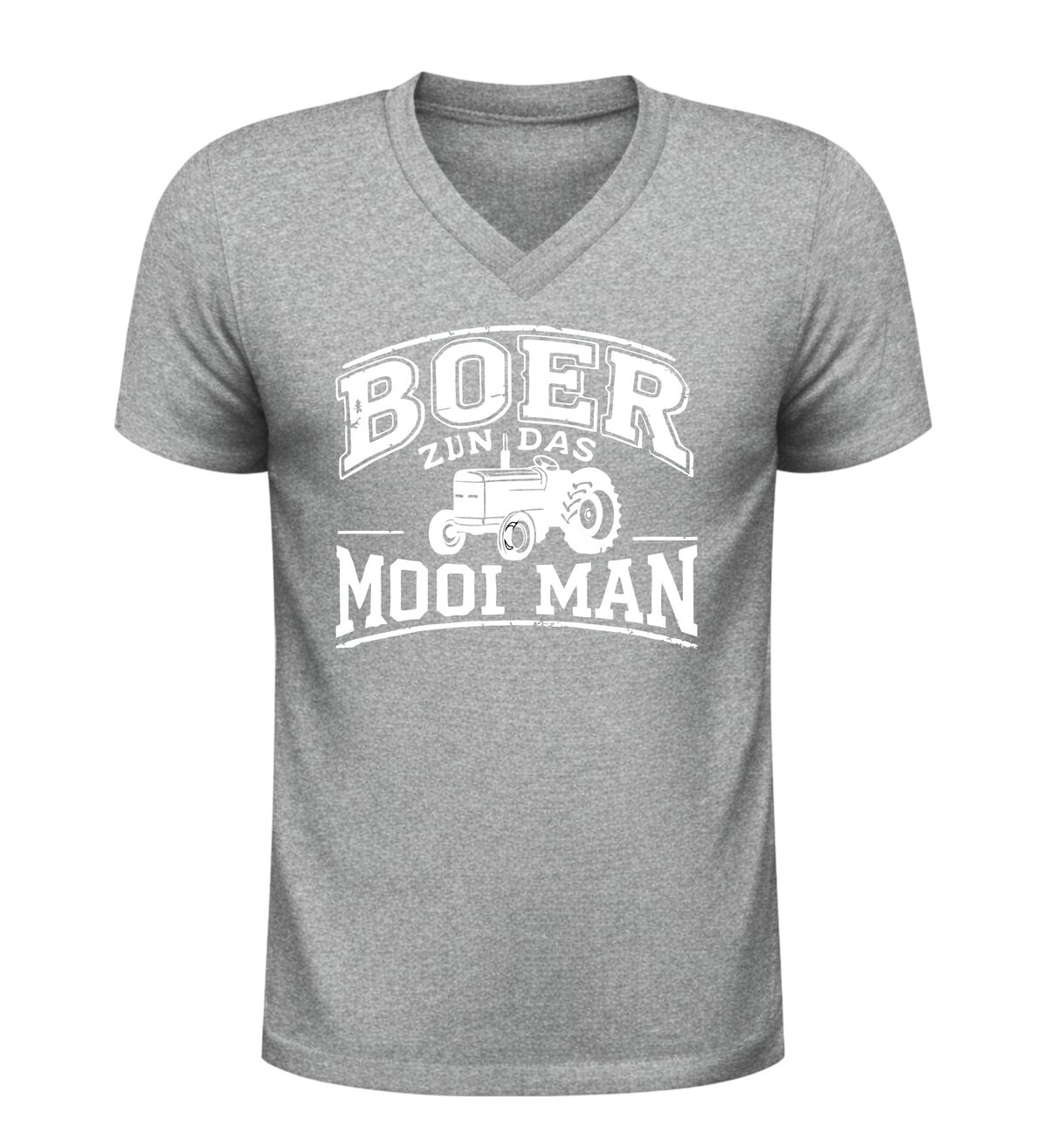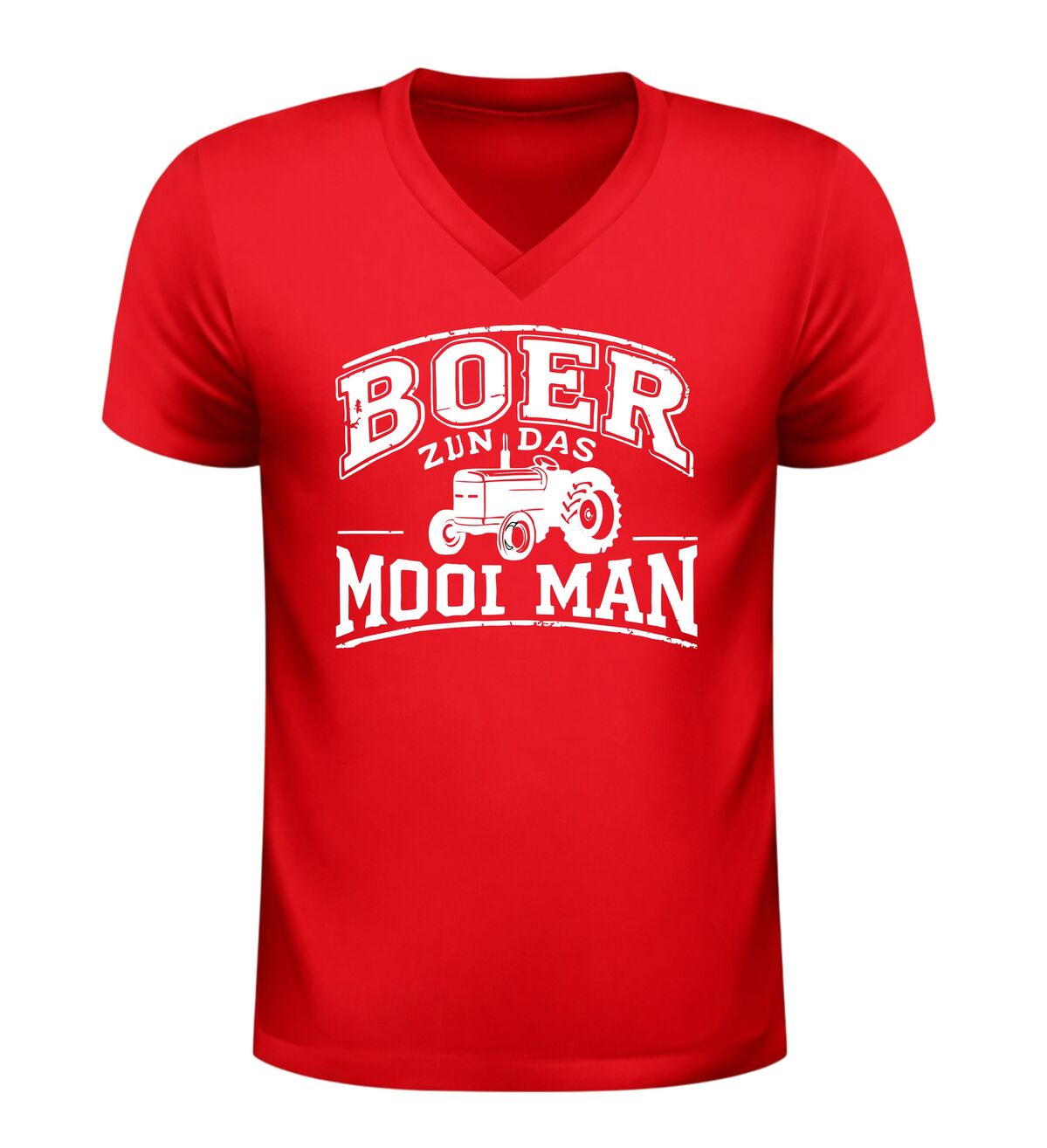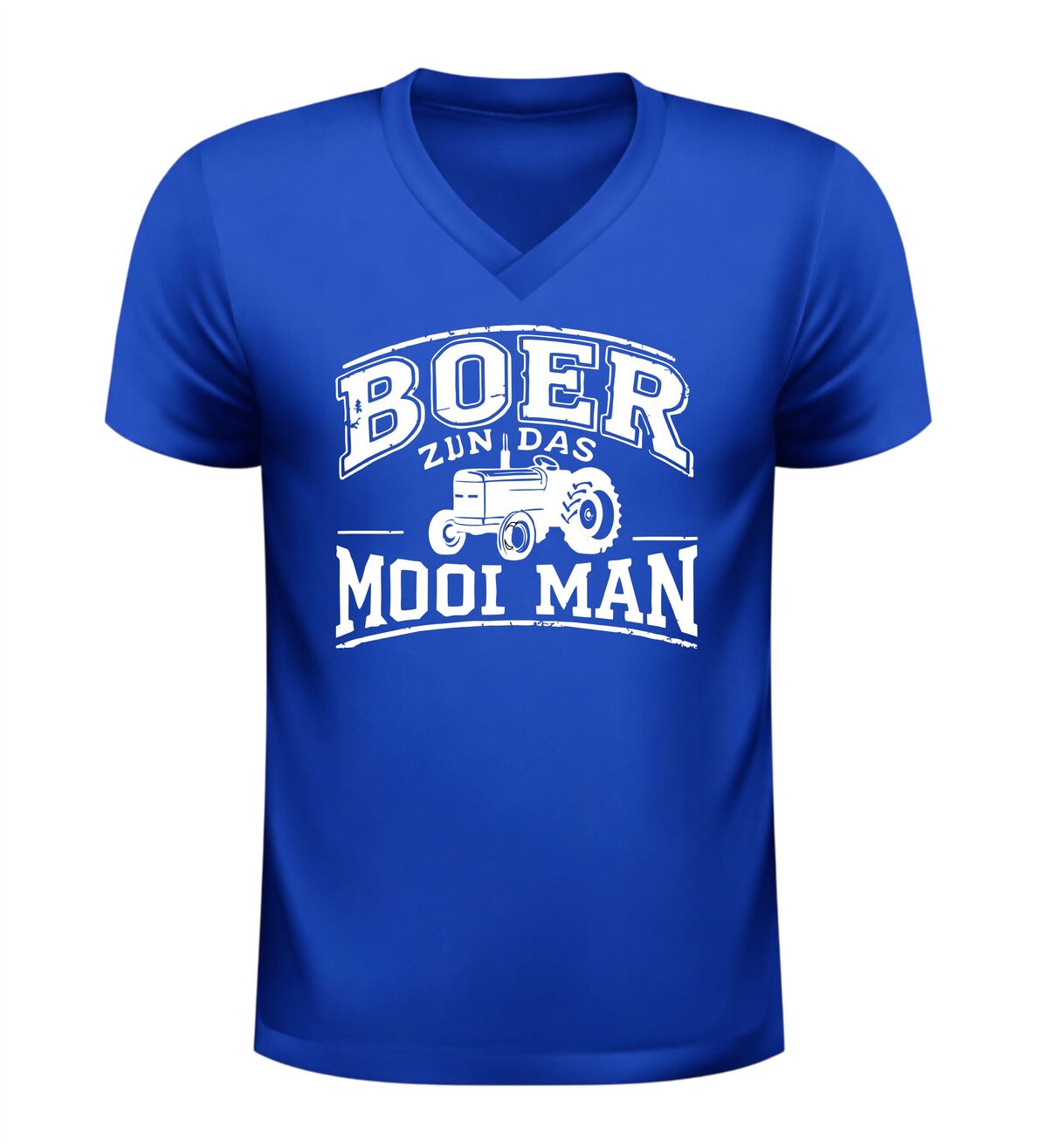 Dit V-hals T-shirt met de tekst boer zijn das mooi is hét shirt voor iedereen die trots is op het boerenleven. De opvallende tractorafbeelding en de krachtige boodschap maken dit boeren T-shirt direct herkenbaar. Dit is geen gewoon shirt, maar een statement voor echte boeren, agrariërs en liefhebbers van het platteland.