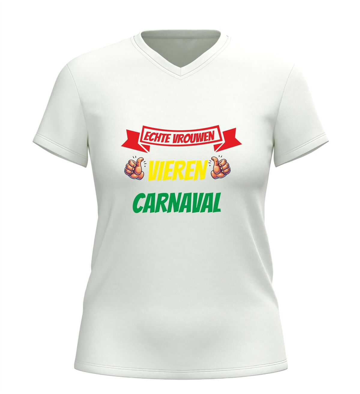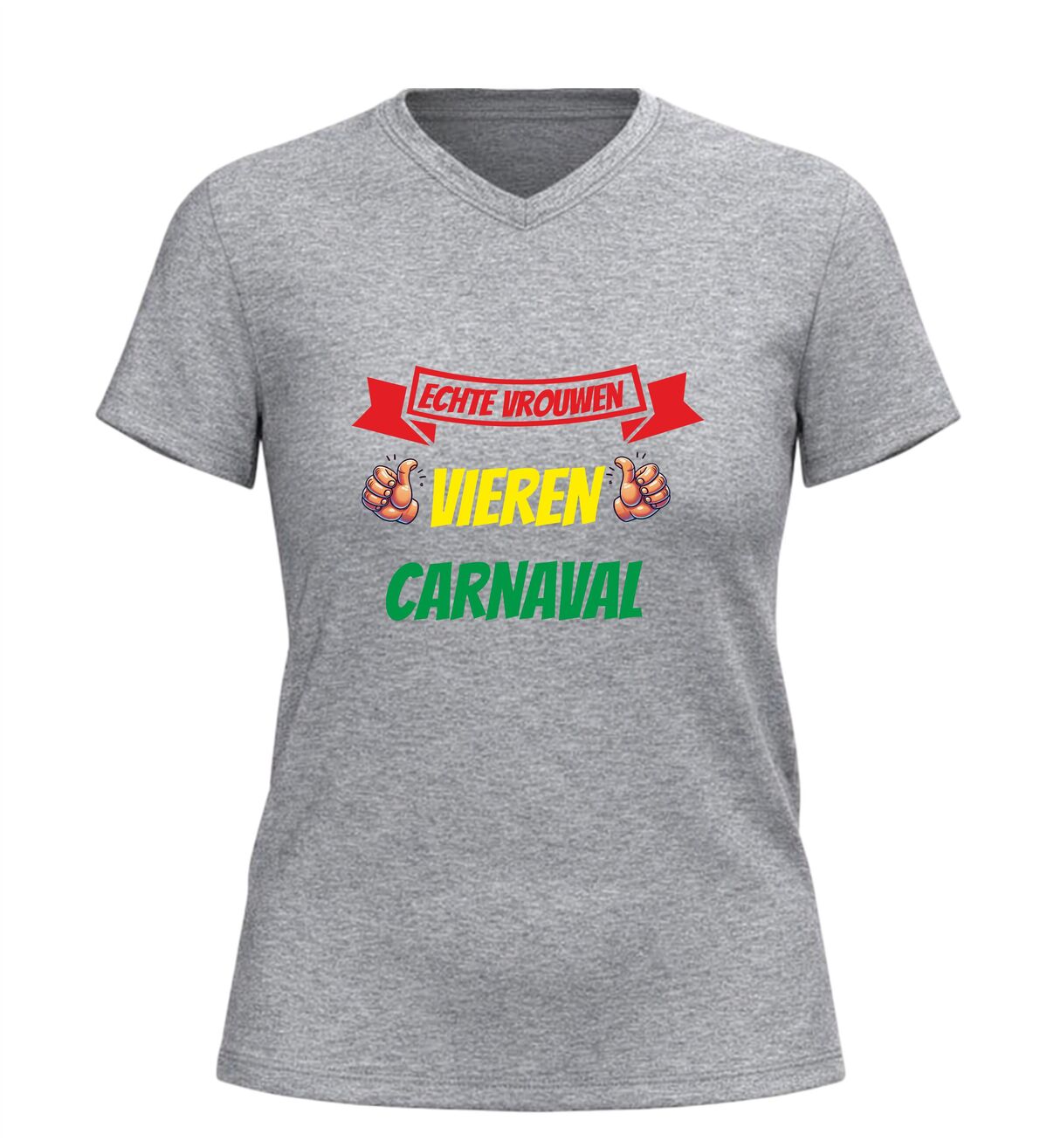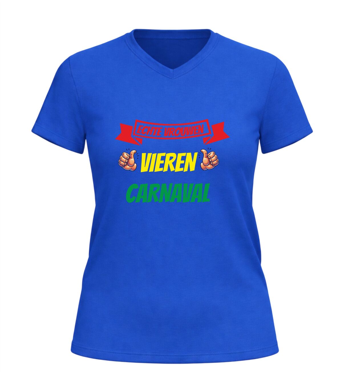 Dit dames V-hals carnaval shirt met de tekst echte vrouwen vieren carnaval is perfect voor iedereen die carnaval met trots, humor en stijl viert. Het comfortabele V-hals shirt is speciaal ontworpen voor dames en zit heerlijk tijdens lange carnavalsdagen en feestavonden. Of je nu de kroegentocht loopt, meedoet aan een optocht of carnaval viert met vriendinnen, dit carnaval shirt voor dames laat meteen zien dat jij weet hoe je feest viert. Dankzij de populaire carnavals tekst is dit shirt ideaal als carnavalskleding, feestshirt of groepsoutfit. Het V-hals dames shirt is makkelijk te combineren met andere carnaval outfits en is een echte blikvanger tijdens carnaval. Ook leuk om cadeau te geven aan echte carnavalsliefhebbers die geen feest willen missen.