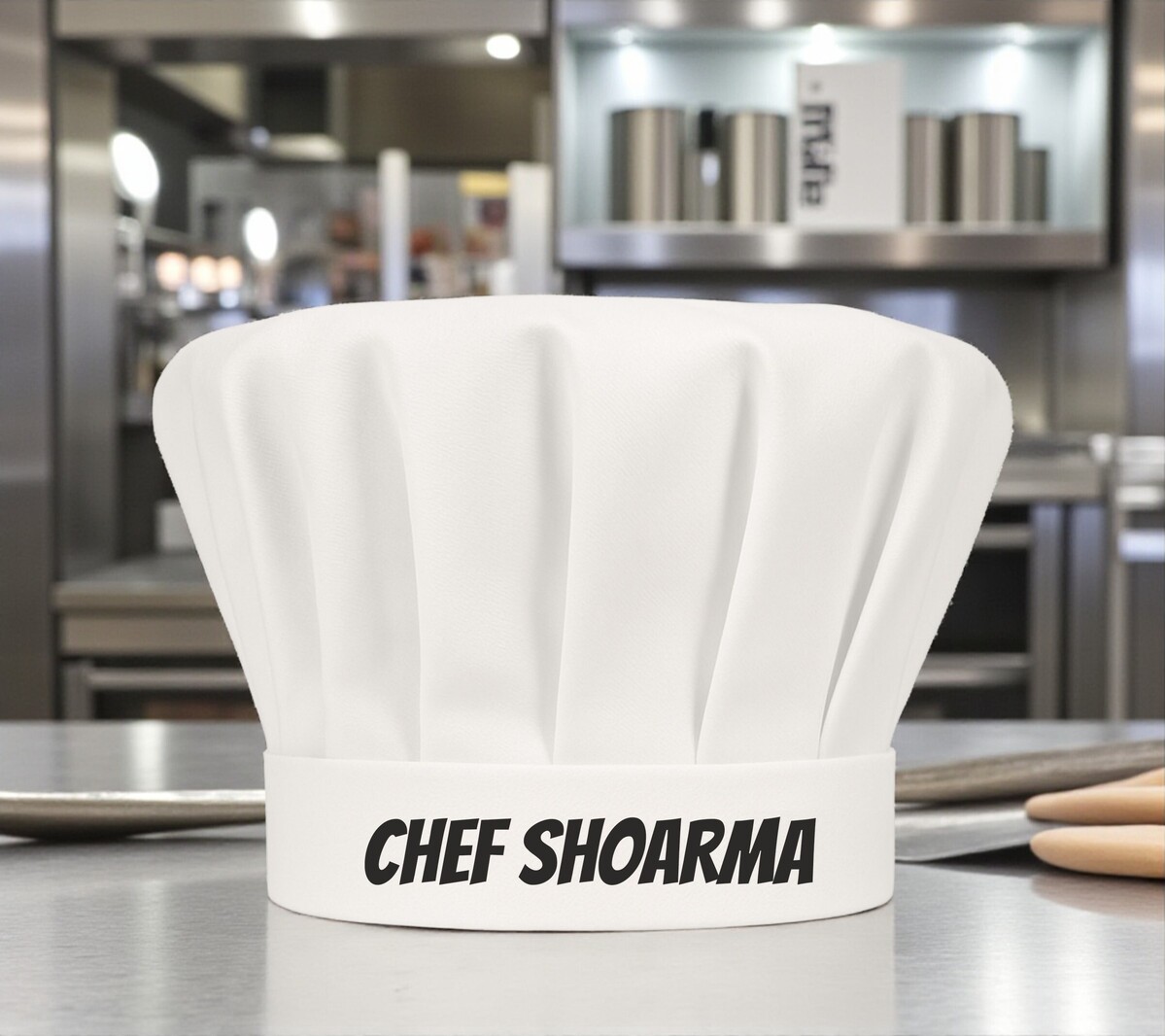 Grappige en gekke koksmuts met de tekst chef shoarma!