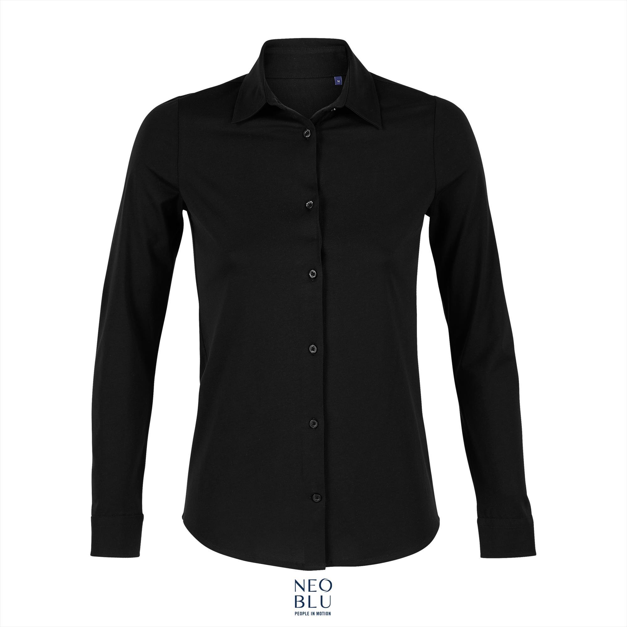 Versterk je stijl met het NEOBLU Balthazar-overhemd voor dames, waar luxe ontmoet met alledaags comfort. Dit chique overhemd, gemaakt van gemerceriseerd jersey, pronkt met een Italiaanse gespreide kraag die een vleugje verfijning toevoegt aan je garderobe.