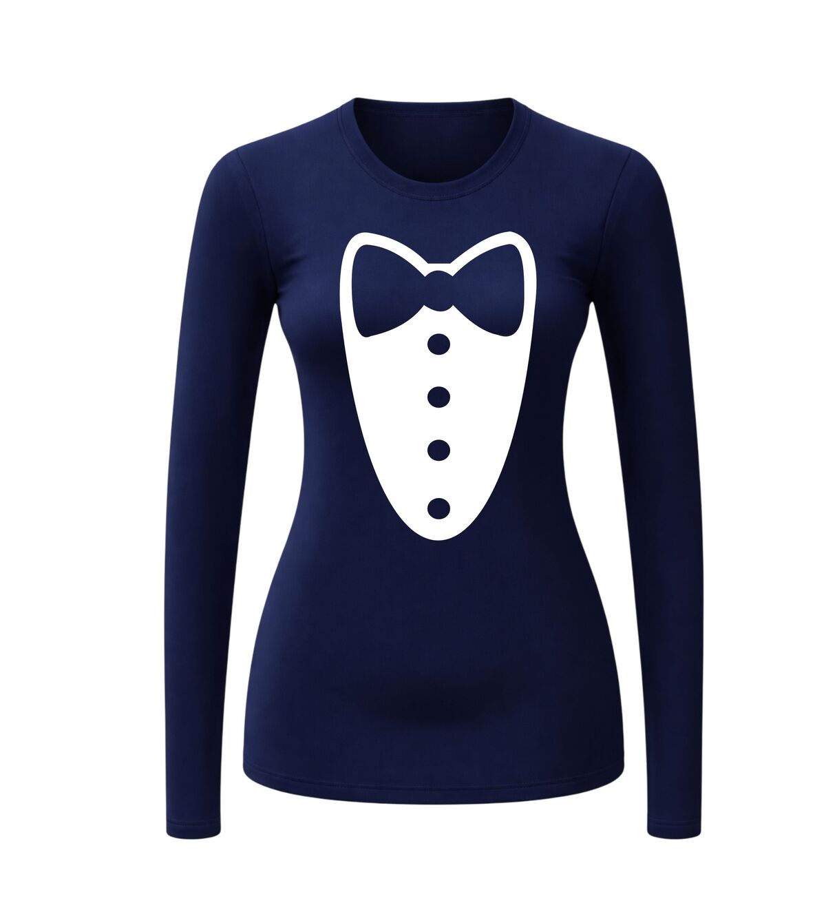 Met deze longsleeve lijkt het alsof je zo uit een luxe gala bent gestapt, terwijl je in werkelijkheid gewoon een supercomfortabel shirt draagt. Perfect voor feestjes, videovergaderingen, foute avonden, carnavalskrakers of elke situatie waarin je ‘netjes’ moet zijn maar daar nul zin in hebt.