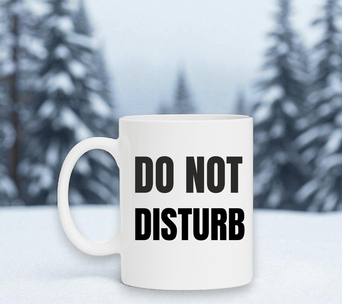 Do not disturb mok. De mok is vaatwasserbestendig, microgolfbestendi en heeft een hoogte van 96mm en een diameter van 80mm.