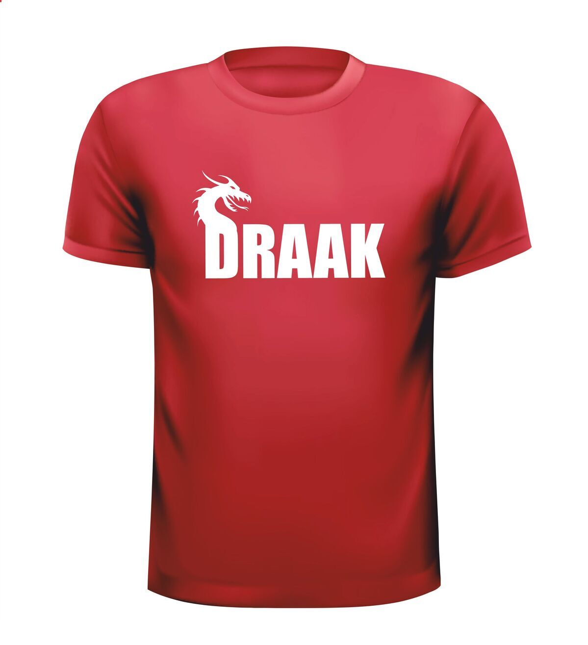 Leuk en grappig t-shirt met de tekst draak. Op de D van draak is ook de afbeelding van een draak te zien. Ben jij soms een draak of draakje, of heb je vrienden of vriendinnen die dit draken t-shirt op het lijf geschreven is. Koop dan snel dit draken t-shirt.