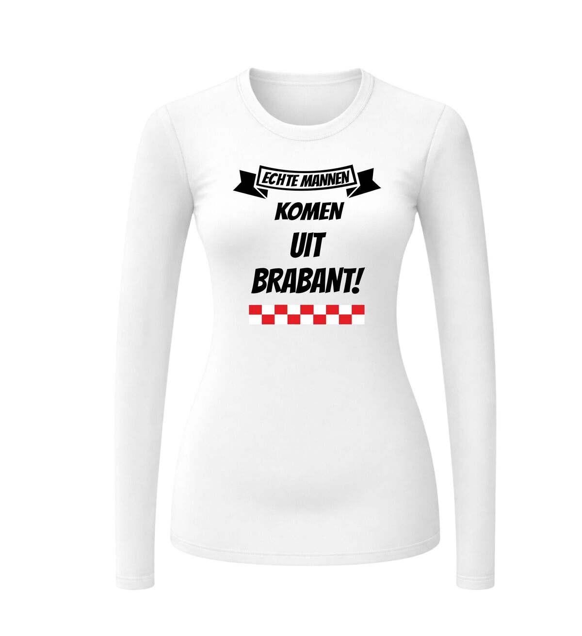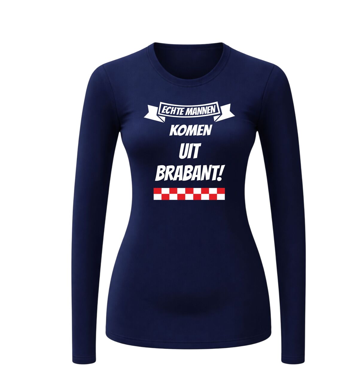 Kom je uit de provincie brabant en ben je een man? Je ben ook nog eens trots op het Brabantste land? Dan kun je dit met dit shirt met lange mouwen laten zien. Deze longsleeve heeft de kleuren van brabant en de tekst: echte mannen komen uit Brabant.