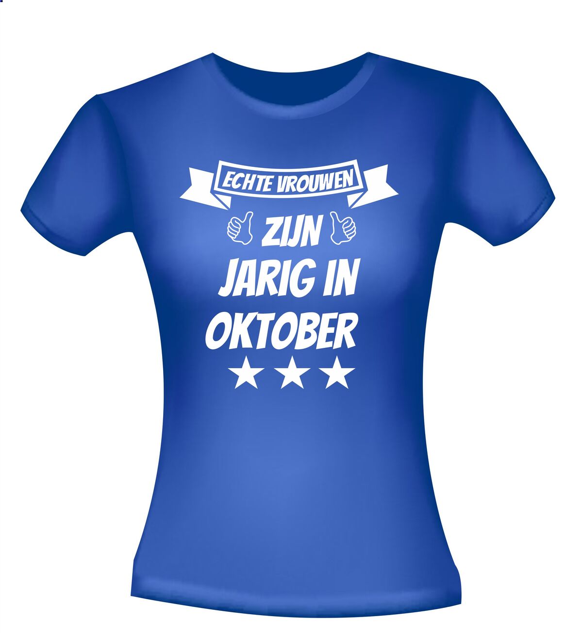 Binnenkort een verjaardag feestje van je stoere vriendin dan is dit t-shirt een leuke binnen binnenkomer. Het t-shirt : echte vrouwen zijn jarig in oktober t-shirt is een dames model.