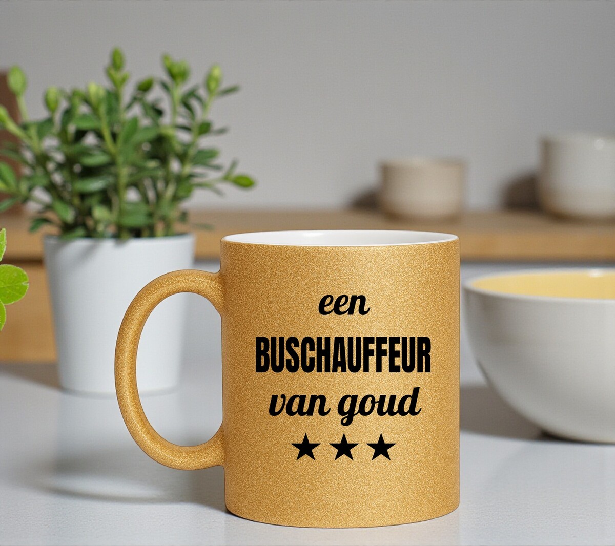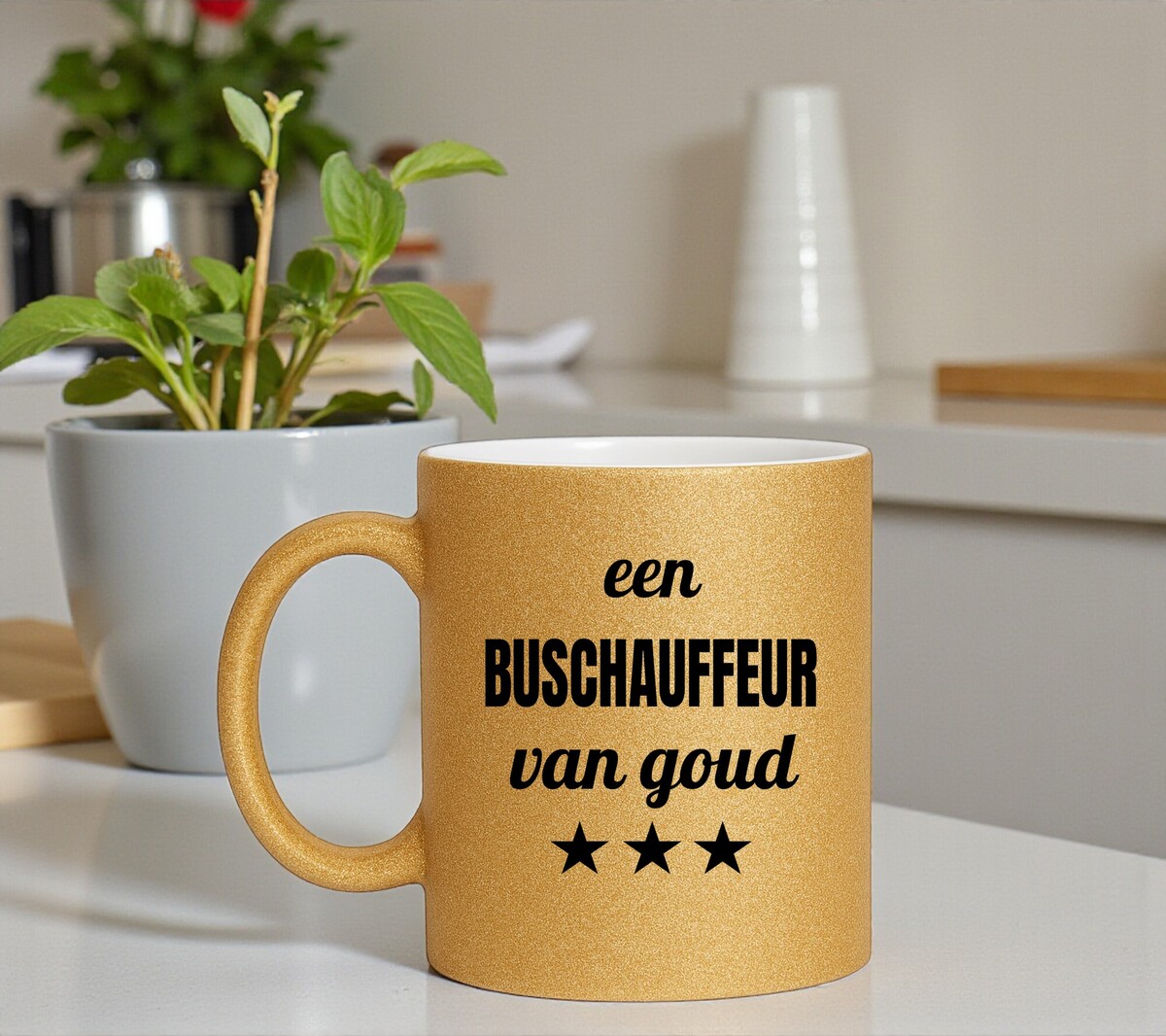 Een gouden glitter mok voor een Buschauffeur van Goud! Een top kado!