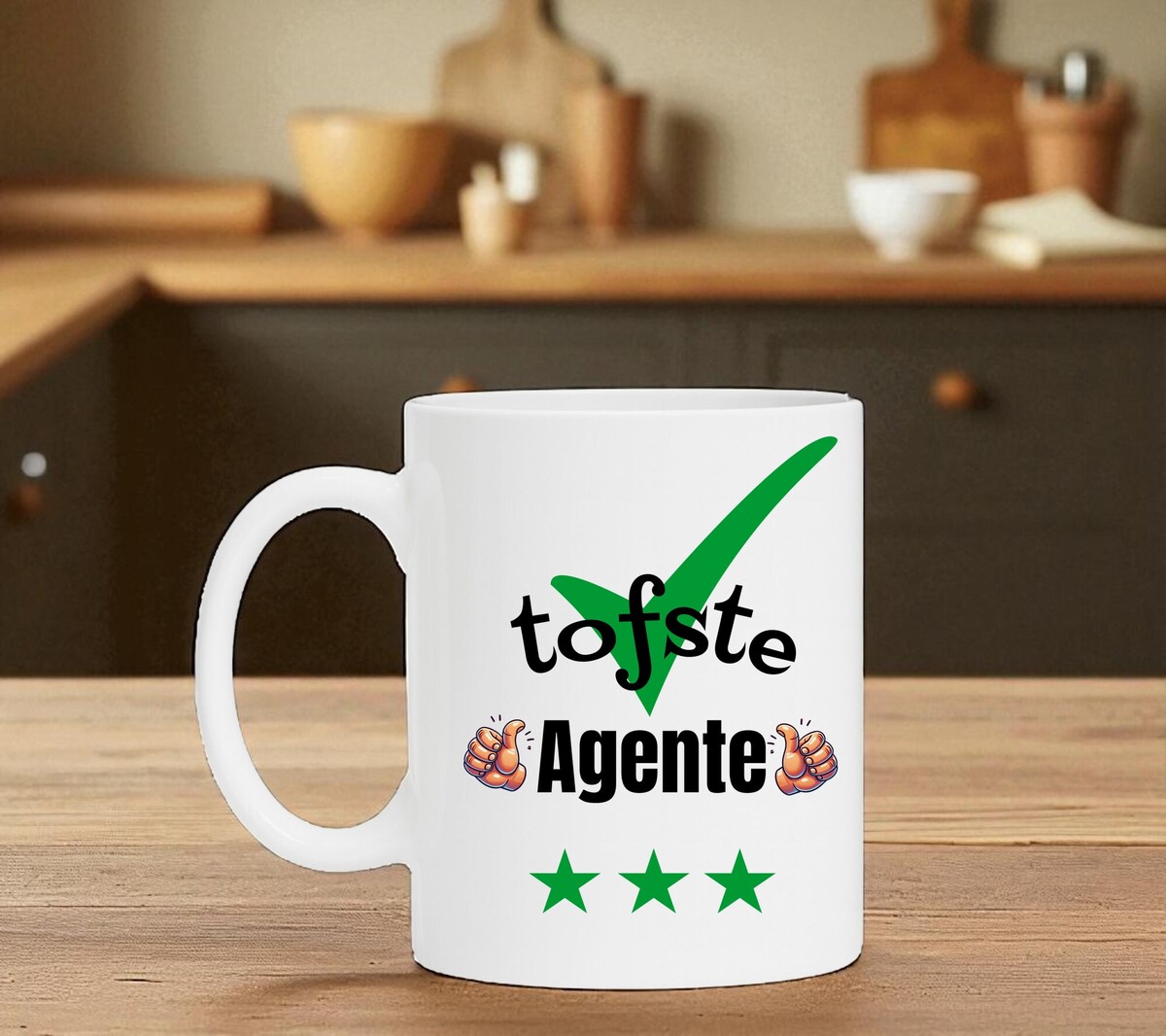 Een leuk kado voor de tofste Agente. Leuk om cadeau te geven bij een verjaardag, bedankje of gewoon zomaar. De mok is vaatwasserbestendig en magnetronbestendig en heeft een hoogte van 96mm en een diameter van 80mm.