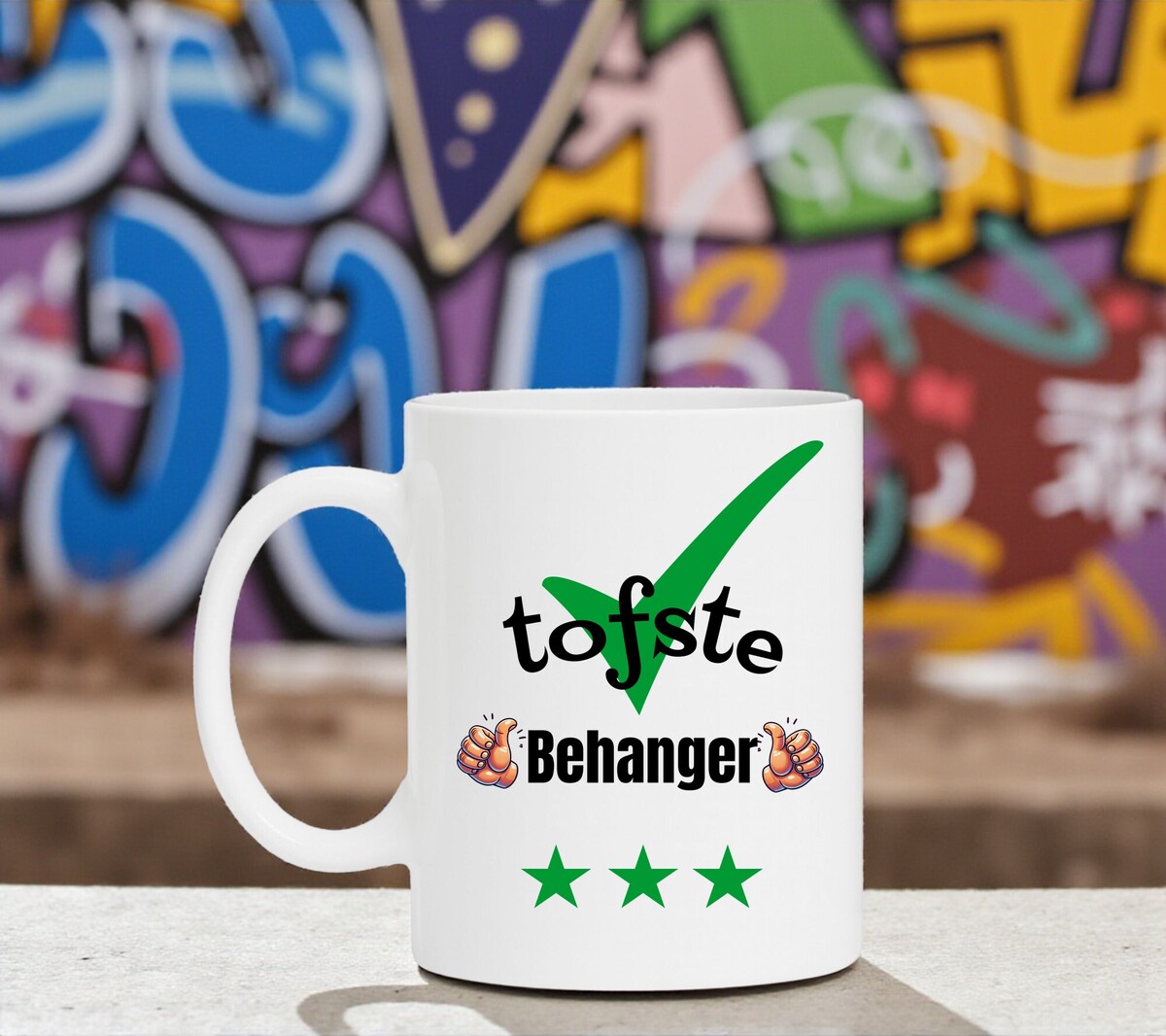 Een leuk kado voor de tofste Behanger. Leuk om cadeau te geven bij een verjaardag, bedankje of gewoon zomaar. De mok is vaatwasserbestendig en magnetronbestendig en heeft een hoogte van 96mm en een diameter van 80mm.