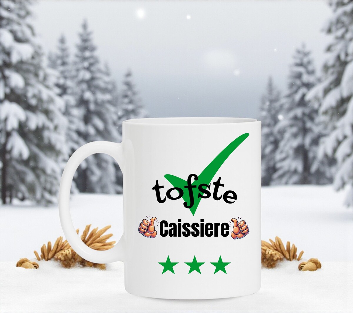 Een leuk kado voor de tofste Caissiere. Leuk om cadeau te geven bij een verjaardag, bedankje of gewoon zomaar. De mok is vaatwasserbestendig en magnetronbestendig en heeft een hoogte van 96mm en een diameter van 80mm.