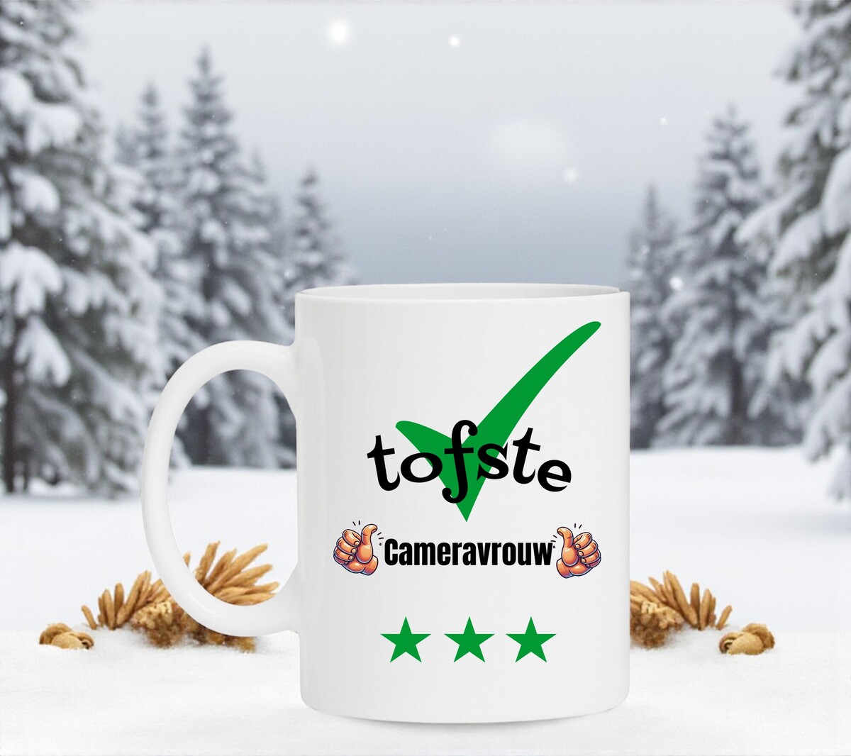Een leuk kado voor de tofste Cameravrouw. Leuk om cadeau te geven bij een verjaardag, bedankje of gewoon zomaar. De mok is vaatwasserbestendig en magnetronbestendig en heeft een hoogte van 96mm en een diameter van 80mm.