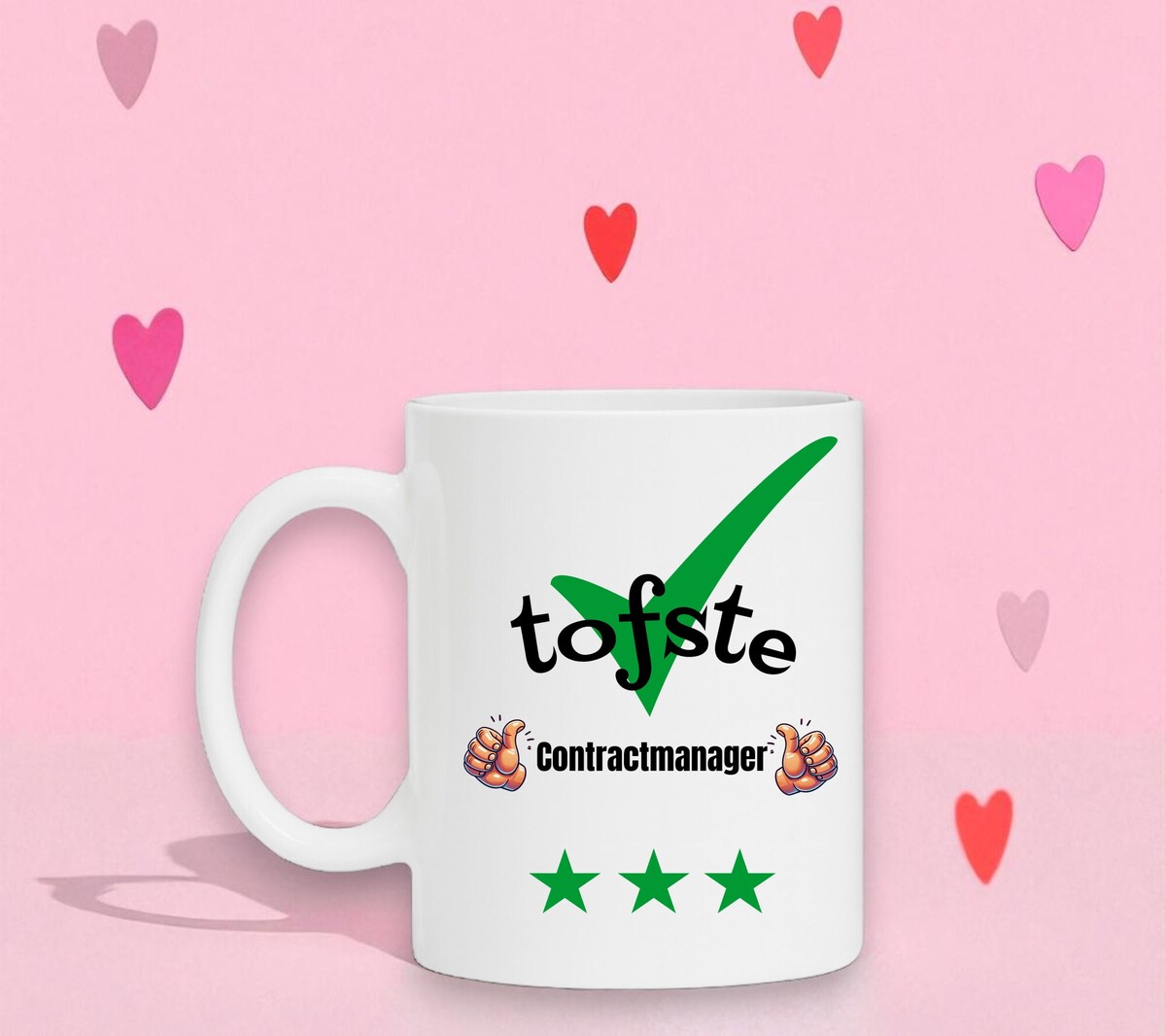 Een leuk kado voor de tofste Contractmanager. Leuk om cadeau te geven bij een verjaardag, bedankje of gewoon zomaar. De mok is vaatwasserbestendig en magnetronbestendig en heeft een hoogte van 96mm en een diameter van 80mm.