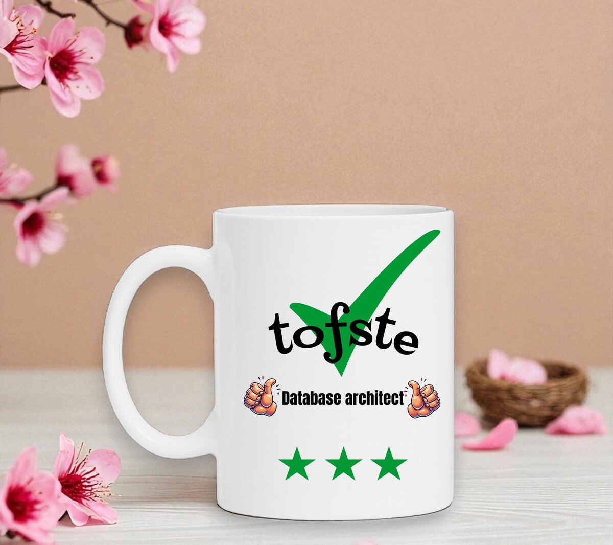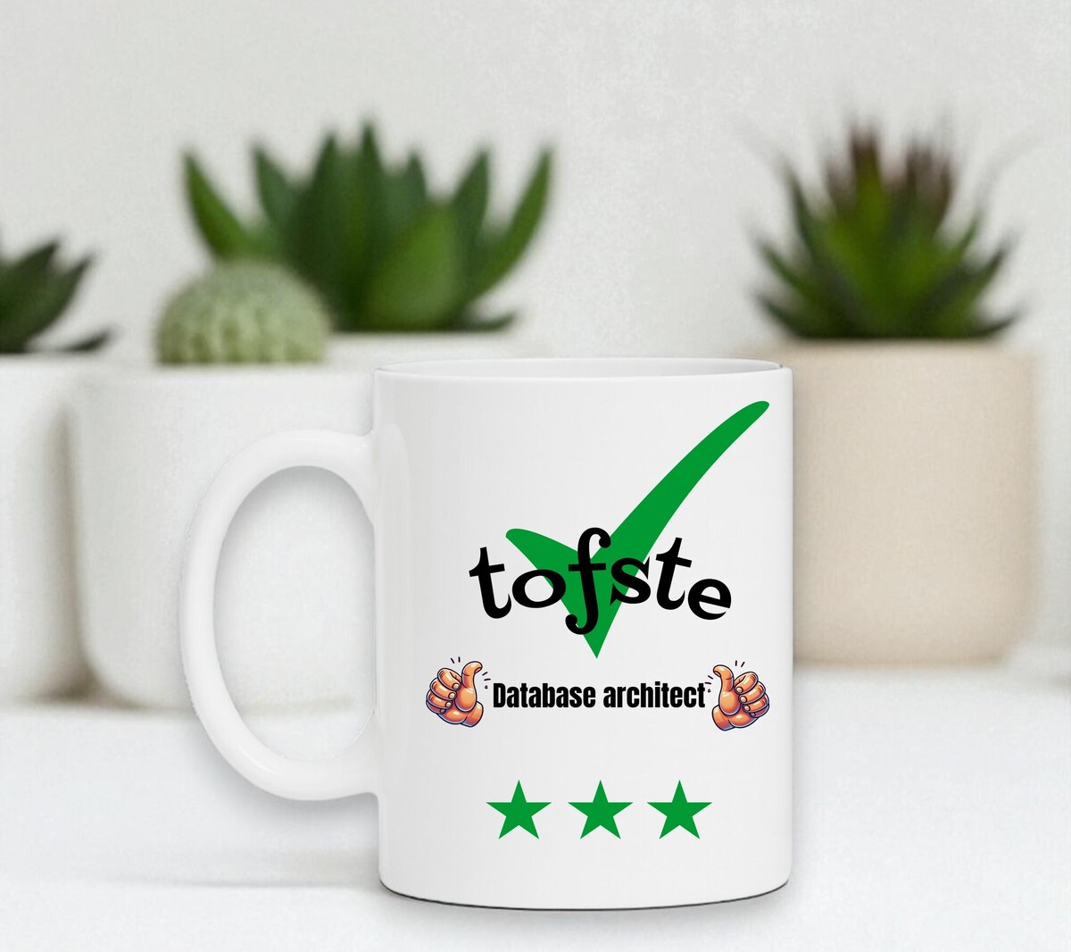 Een leuk kado voor de tofste Database architect. Leuk om cadeau te geven bij een verjaardag, bedankje of gewoon zomaar. De mok is vaatwasserbestendig en magnetronbestendig en heeft een hoogte van 96mm en een diameter van 80mm.