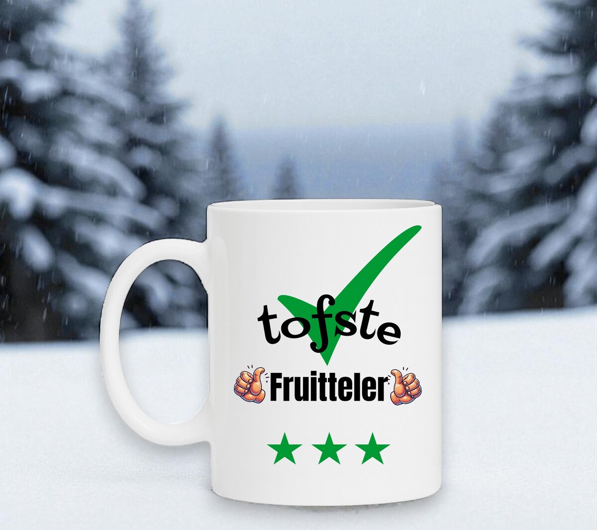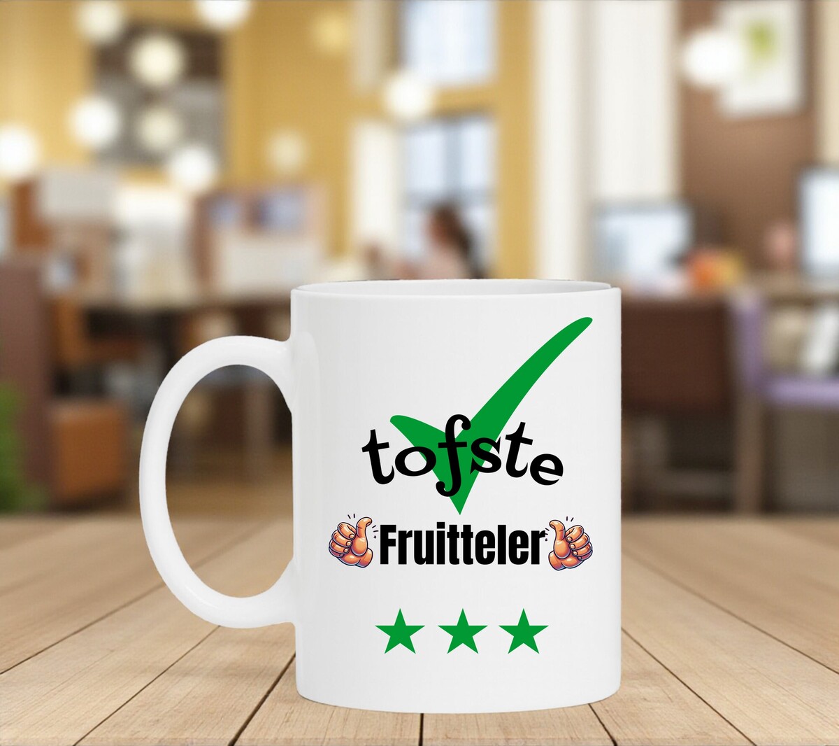 Een leuk kado voor de tofste Fruitteler. Leuk om cadeau te geven bij een verjaardag, bedankje of gewoon zomaar. De mok is vaatwasserbestendig en magnetronbestendig en heeft een hoogte van 96mm en een diameter van 80mm.