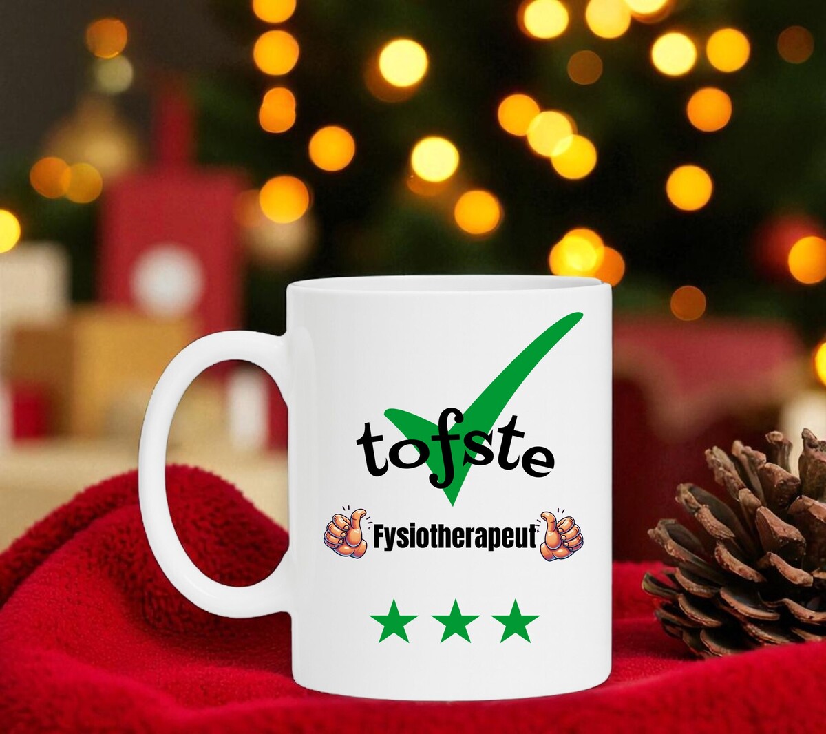 Een leuk kado voor de tofste Fysiotherapeut. Leuk om cadeau te geven bij een verjaardag, bedankje of gewoon zomaar. De mok is vaatwasserbestendig en magnetronbestendig en heeft een hoogte van 96mm en een diameter van 80mm.