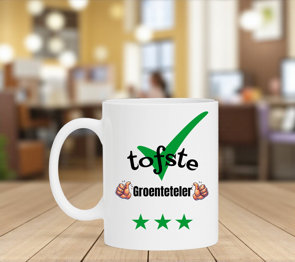 Een leuk kado voor de tofste Groenteteler. Leuk om cadeau te geven bij een verjaardag, bedankje of gewoon zomaar. De mok is vaatwasserbestendig en magnetronbestendig en heeft een hoogte van 96mm en een diameter van 80mm.
