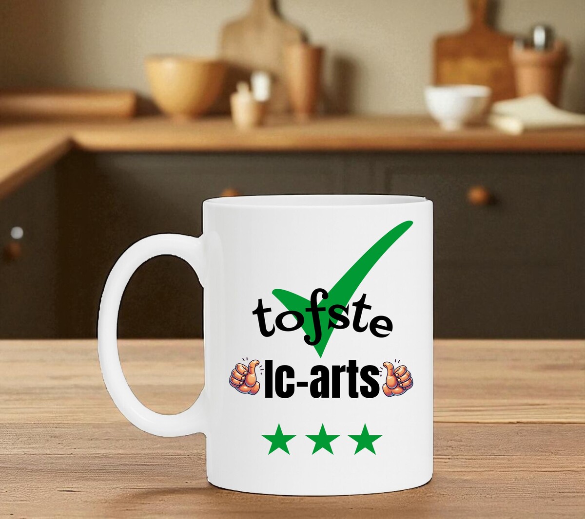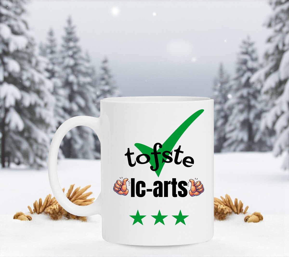 Een leuk kado voor de tofste Ic-arts. Leuk om cadeau te geven bij een verjaardag, bedankje of gewoon zomaar. De mok is vaatwasserbestendig en magnetronbestendig en heeft een hoogte van 96mm en een diameter van 80mm.