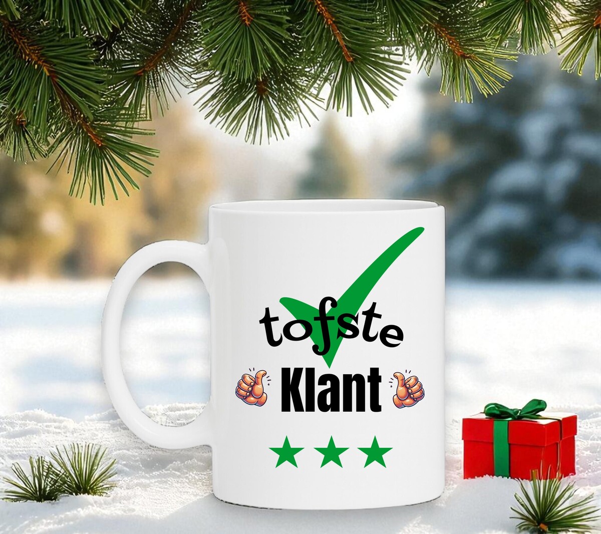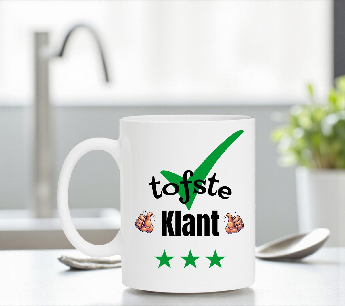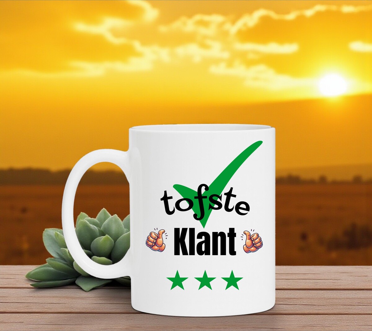 Een leuk kado voor de tofste Klant. Leuk om cadeau te geven bij een verjaardag, bedankje of gewoon zomaar. De mok is vaatwasserbestendig en magnetronbestendig en heeft een hoogte van 96mm en een diameter van 80mm.