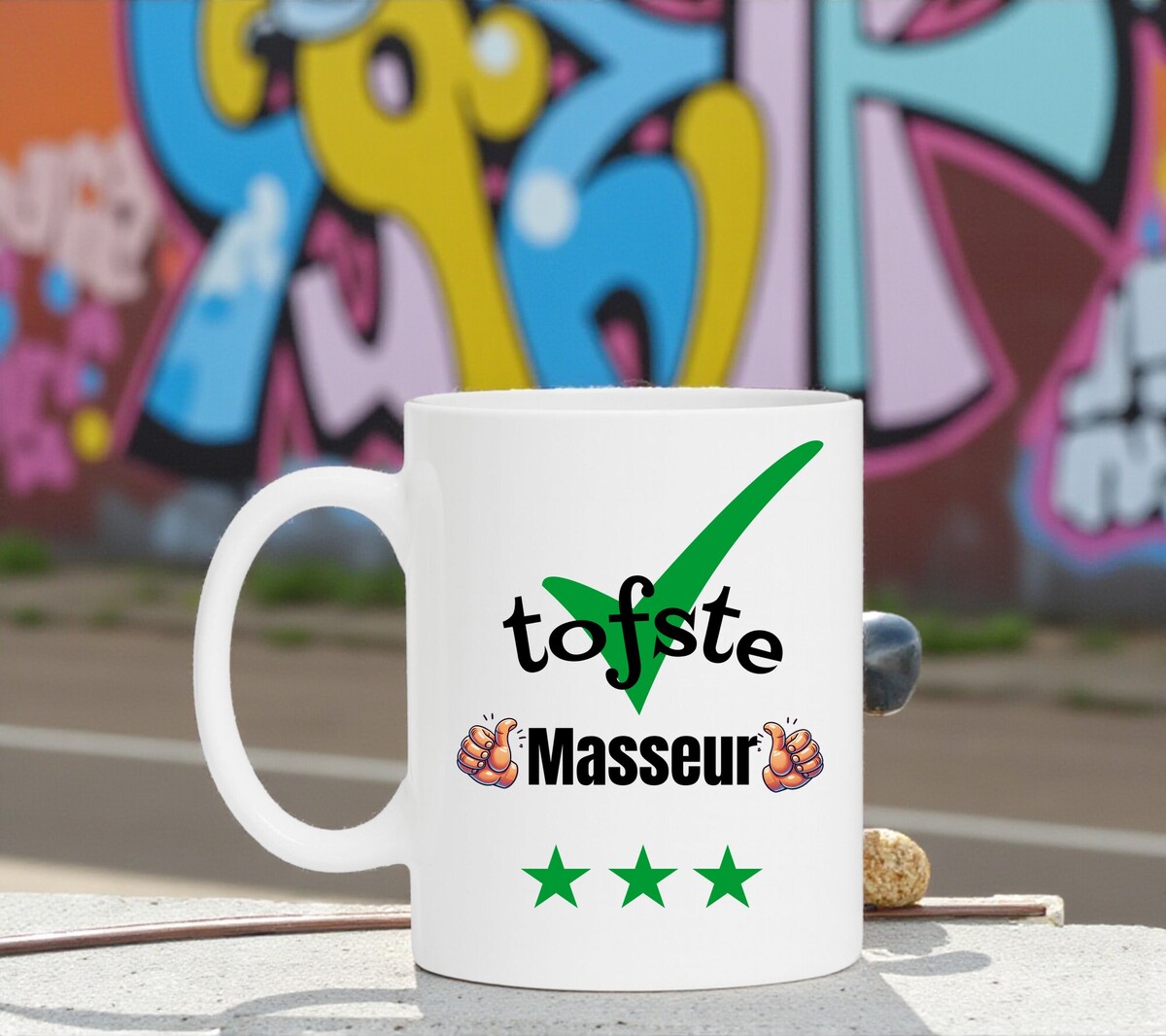Een leuk kado voor de tofste Masseur. Leuk om cadeau te geven bij een verjaardag, bedankje of gewoon zomaar. De mok is vaatwasserbestendig en magnetronbestendig en heeft een hoogte van 96mm en een diameter van 80mm.