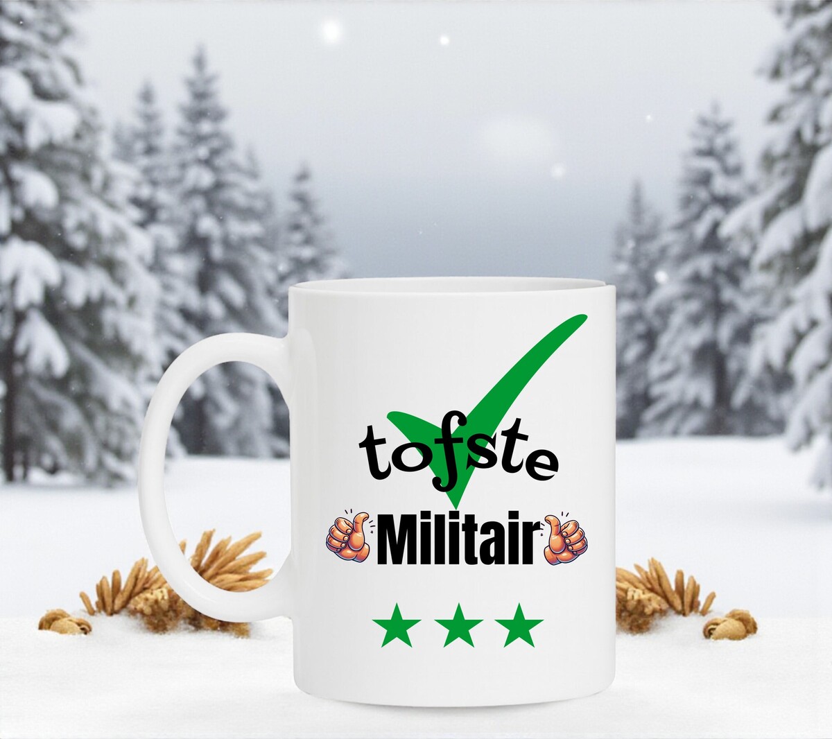 Een leuk kado voor de tofste Militair. Leuk om cadeau te geven bij een verjaardag, bedankje of gewoon zomaar. De mok is vaatwasserbestendig en magnetronbestendig en heeft een hoogte van 96mm en een diameter van 80mm.