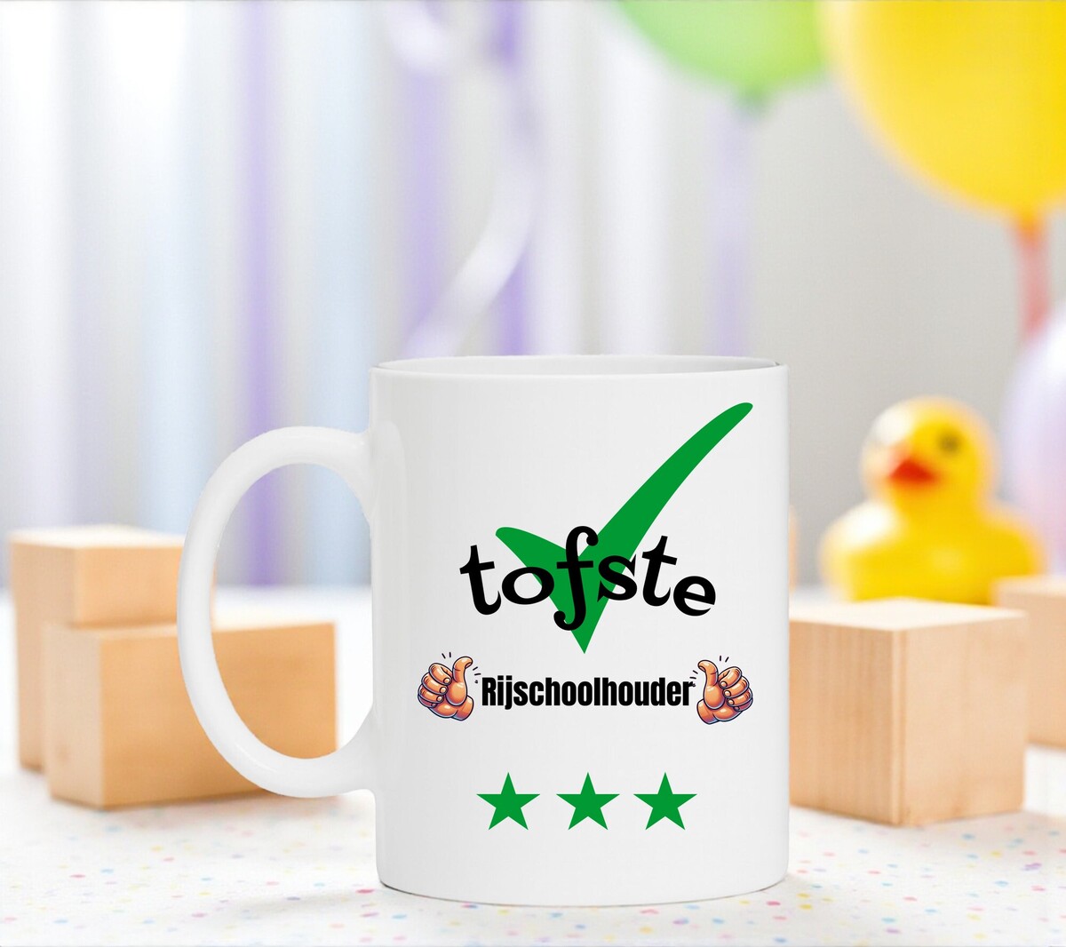 Een leuk kado voor de tofste Rijschoolhouder. Leuk om cadeau te geven bij een verjaardag, bedankje of gewoon zomaar. De mok is vaatwasserbestendig en magnetronbestendig en heeft een hoogte van 96mm en een diameter van 80mm.