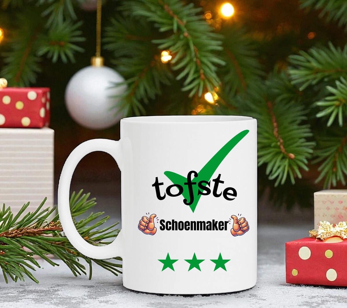 Een leuk kado voor de tofste Schoenmaker. Leuk om cadeau te geven bij een verjaardag, bedankje of gewoon zomaar. De mok is vaatwasserbestendig en magnetronbestendig en heeft een hoogte van 96mm en een diameter van 80mm.