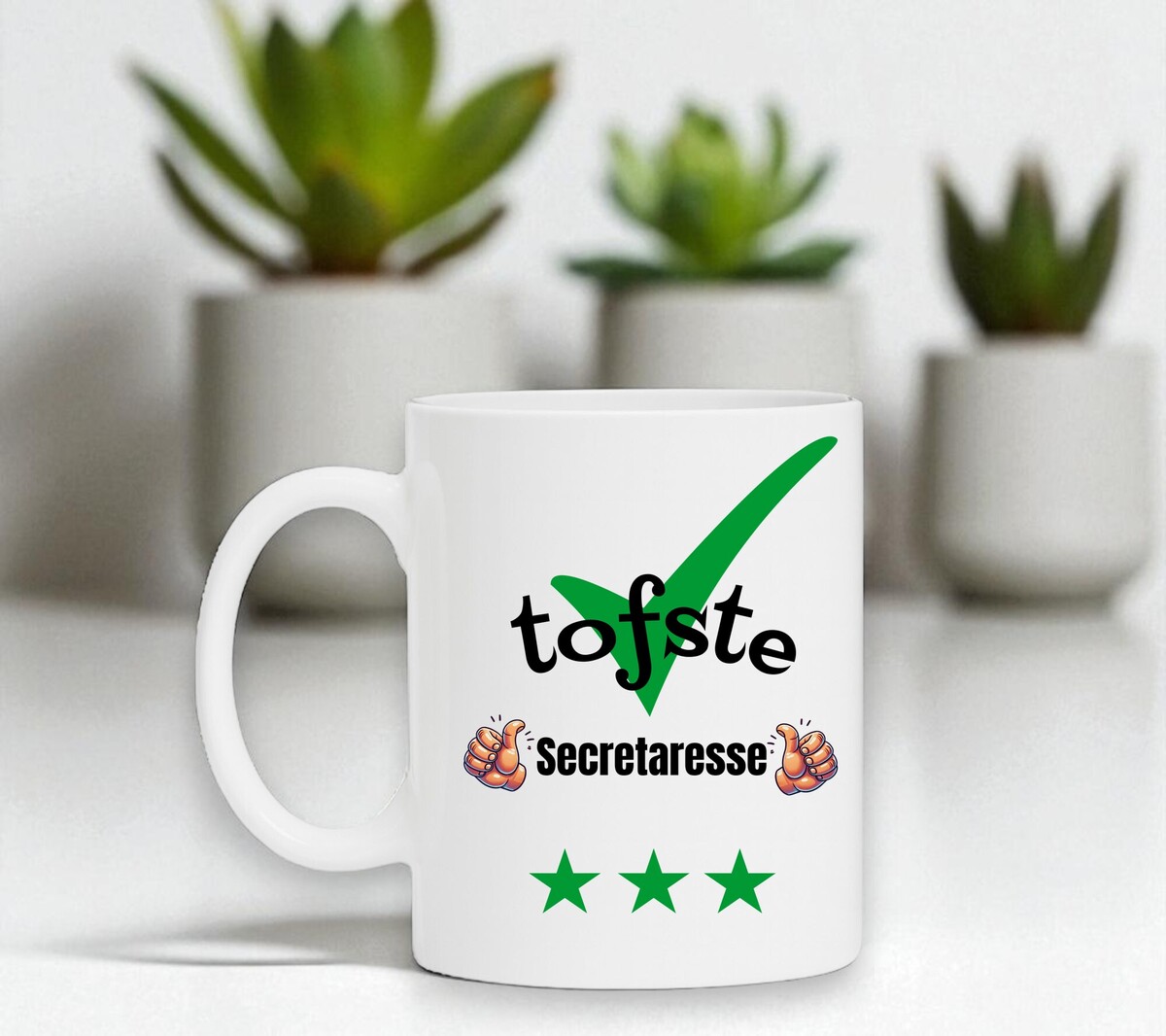 Een leuk kado voor de tofste Secretaresse. Leuk om cadeau te geven bij een verjaardag, bedankje of gewoon zomaar. De mok is vaatwasserbestendig en magnetronbestendig en heeft een hoogte van 96mm en een diameter van 80mm.