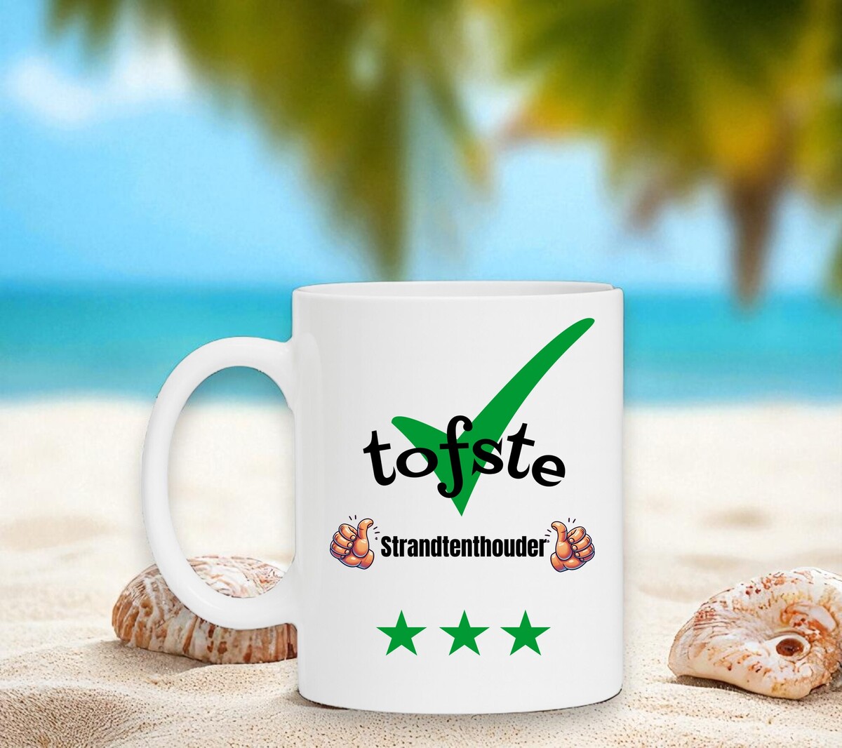 Een leuk kado voor de tofste Strandtenthouder. Leuk om cadeau te geven bij een verjaardag, bedankje of gewoon zomaar. De mok is vaatwasserbestendig en magnetronbestendig en heeft een hoogte van 96mm en een diameter van 80mm.
