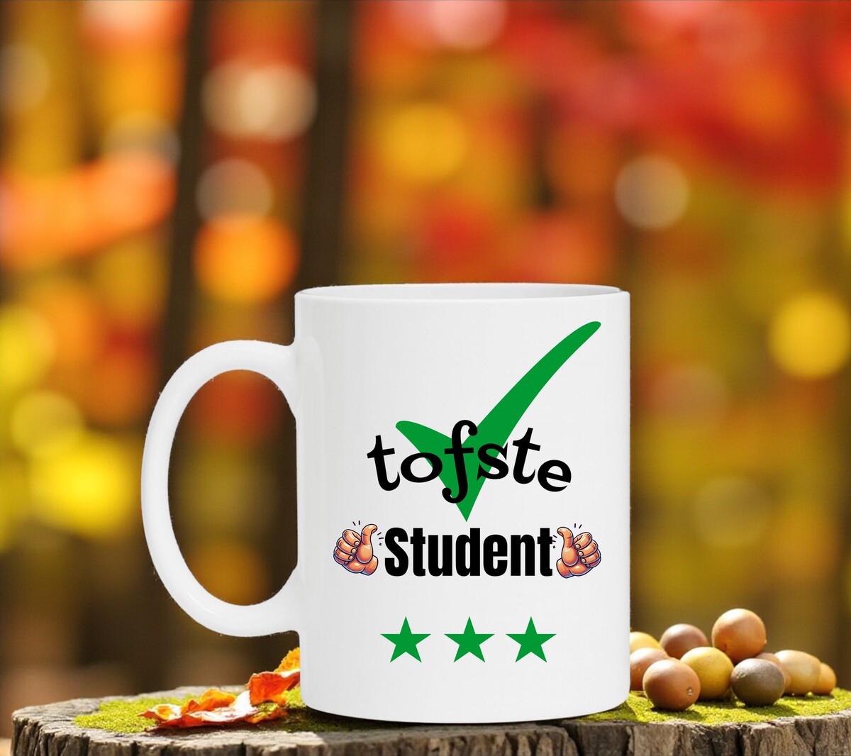 Een leuk kado voor de tofste Student. Leuk om cadeau te geven bij een verjaardag, bedankje of gewoon zomaar. De mok is vaatwasserbestendig en magnetronbestendig en heeft een hoogte van 96mm en een diameter van 80mm.