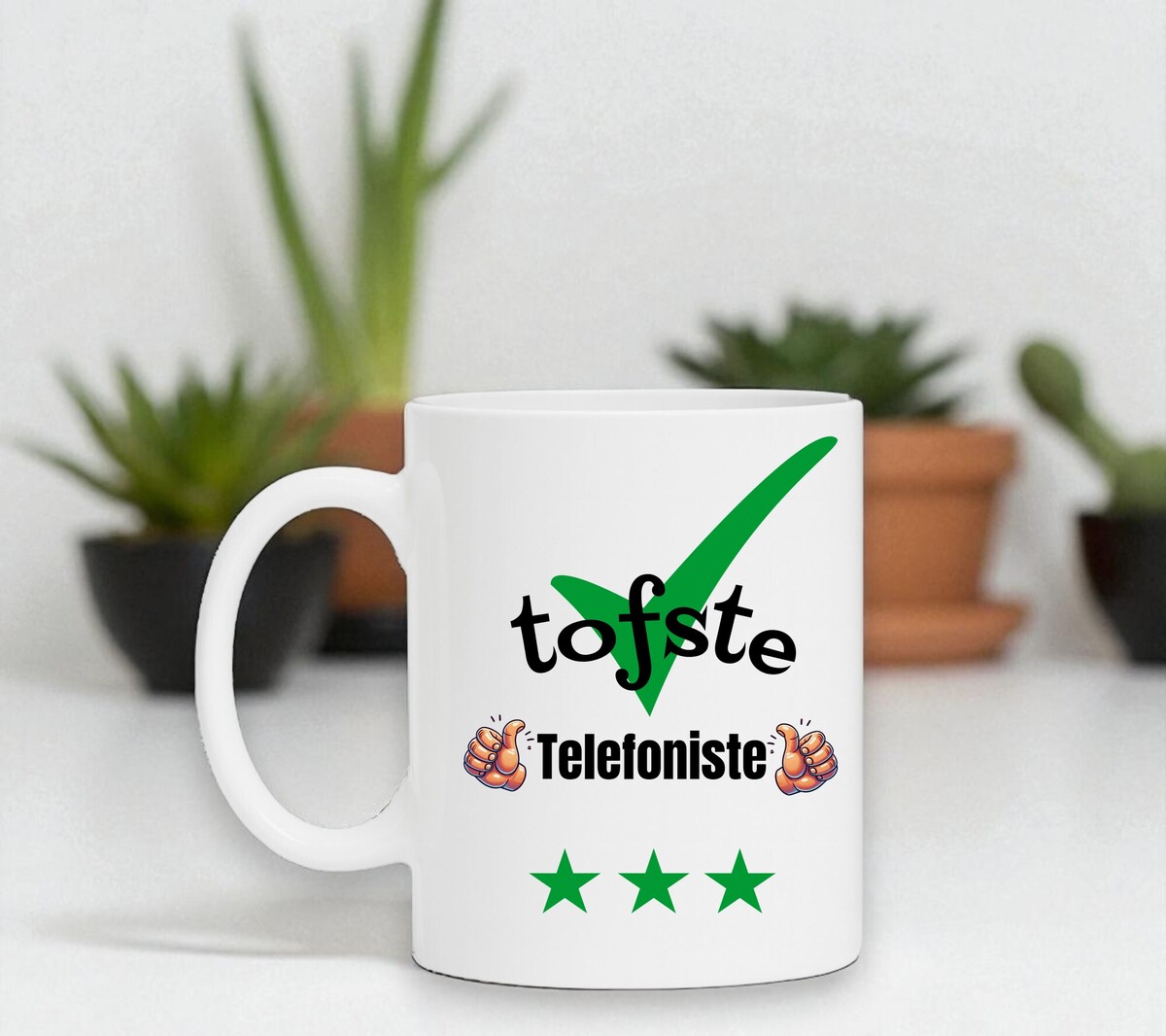 Een leuk kado voor de tofste Telefoniste. Leuk om cadeau te geven bij een verjaardag, bedankje of gewoon zomaar. De mok is vaatwasserbestendig en magnetronbestendig en heeft een hoogte van 96mm en een diameter van 80mm.